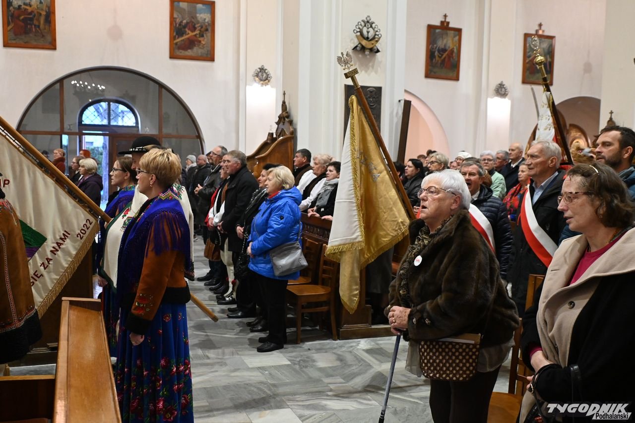 Pierwszym punktem niedzielnych uroczystości będzie Msza św. w kościele NSPJ w stolicy Podhala. Nowotarska świątynia była wypełniona delegacjami z pocztami sztandarowymi "Solidarności" niemal z całej Polski, dojechali m.in. górnicy ze Śląska. Podczas liturgii śpiewał chór parafialny "Echo Gorczańskie" oraz kapela góralska "Dziewięćsił". W świątyni zgromadzili się nie tylko działacze "Solidarności", ale także liczni mieszkańcy stolicy Podhala, parafianie, goście, m.in. podhalańscy parlamentarzyści, władze samorządowe na czele ze starostą nowotarskim Tomaszem Hamerskim.