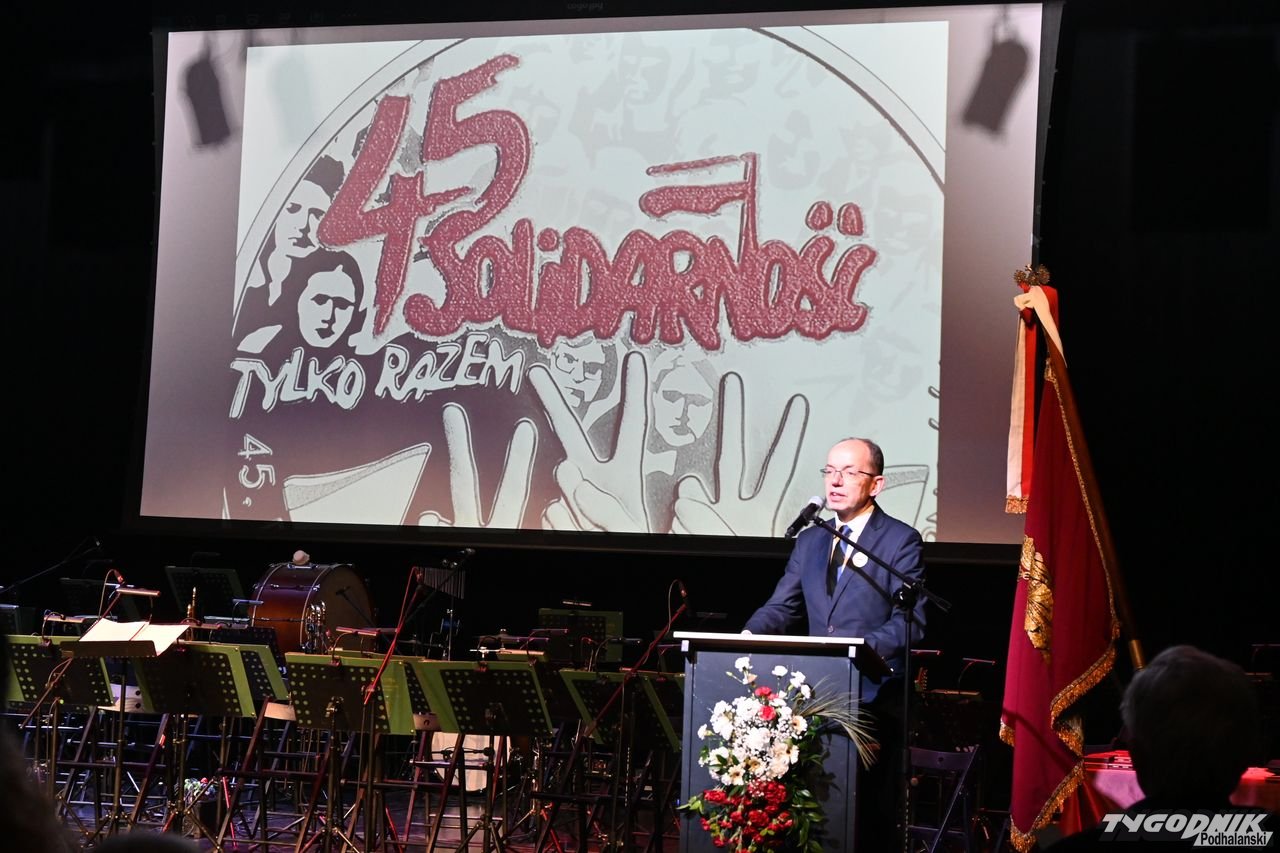 Uroczysta Msza św., przemarsz do Miejskiego Centrum Kultury, koncert galowy z udziałem Orkiestry Reprezentacyjnej Straży Granicznej - Karpackiego Oddziału SG im. I Pułku Strzelców Podhalańskich w Nowym Sączu - to wybrane punkty obchodów 45-lecia "Solidarności", które zostały zorganizowane w niedzielę 16 listopada w stolicy Podhala.