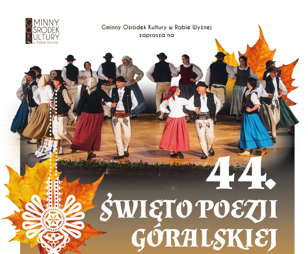 Gminny Ośrodek Kultury w Rabie Wyżnej zaprasza na 45. Święto Poezji Góralskiej, które odbędzie się 23 listopada w sali teatralnej w Domu Parafialnym. Swoją twórczość zaprezentują poeci z Podhala, Spisza, Orawy, Pienin, Ziemi Sądeckiej i Beskidów.
