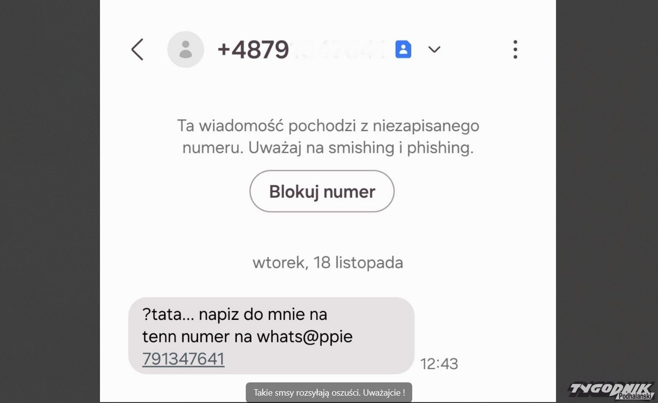 Mieszkańcy Podhala coraz częściej otrzymują podejrzane wiadomości SMS z prośbą o kontakt przez WhatsApp.