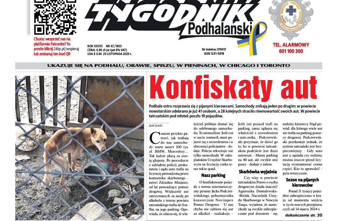 W papierowym wydaniu Tygodnika: Podhale ostro rozprawia się z pijanymi kierowcami. Samochody znikają jeden po drugim.