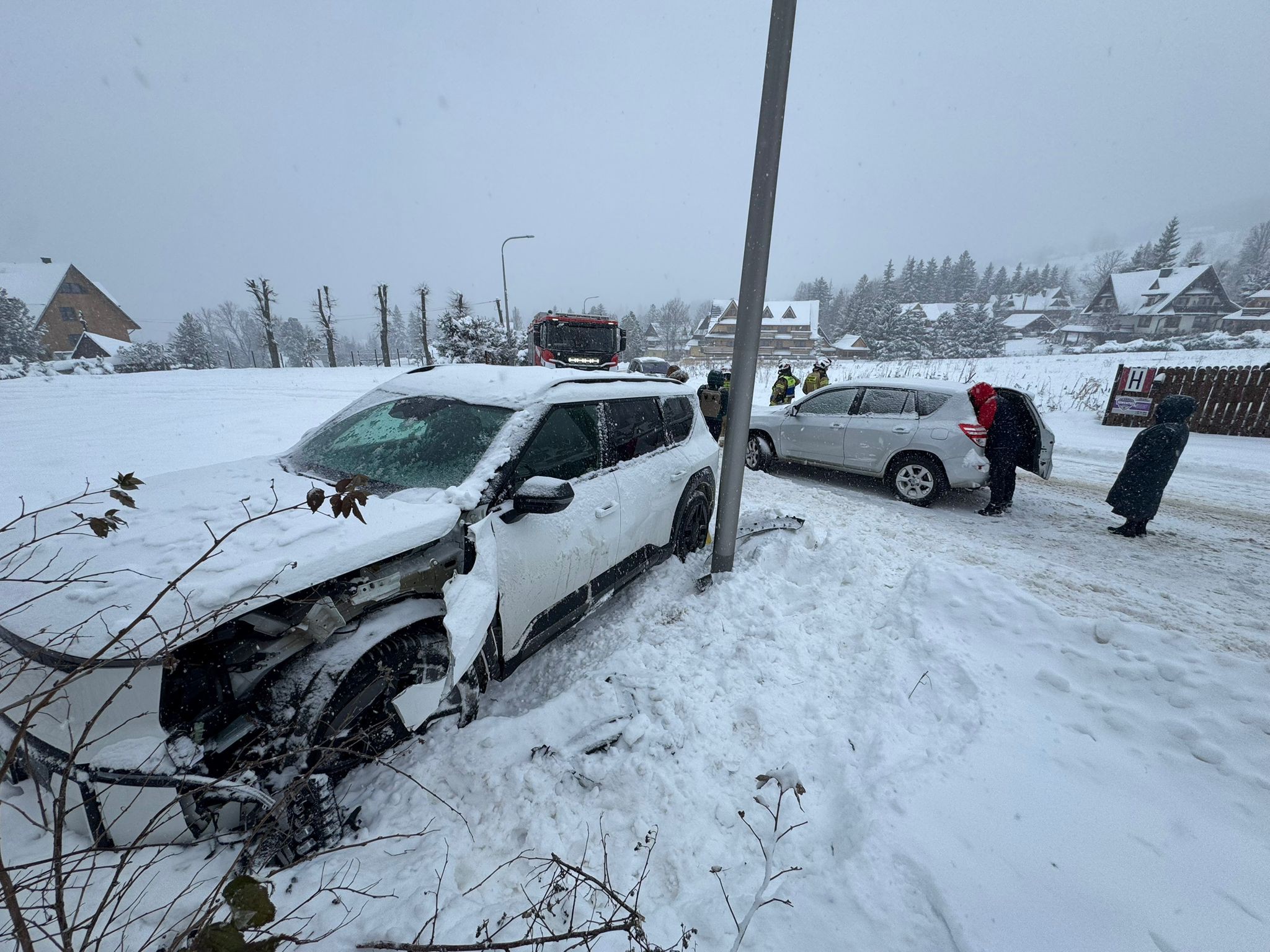 W Kościelisku doszło do kolizji, samochód osobowy wjechał w latarnię.