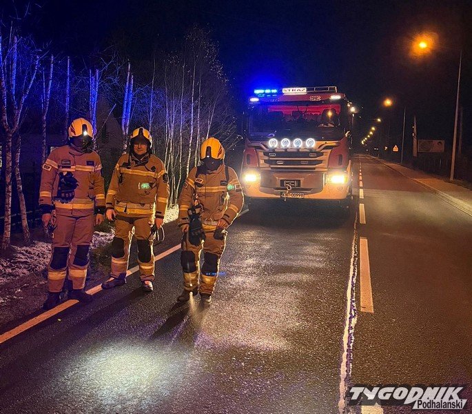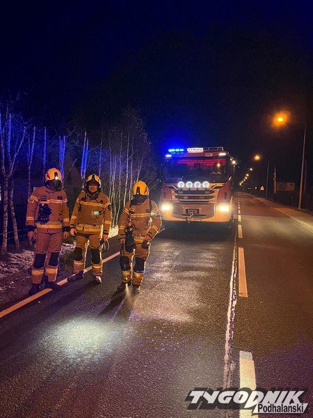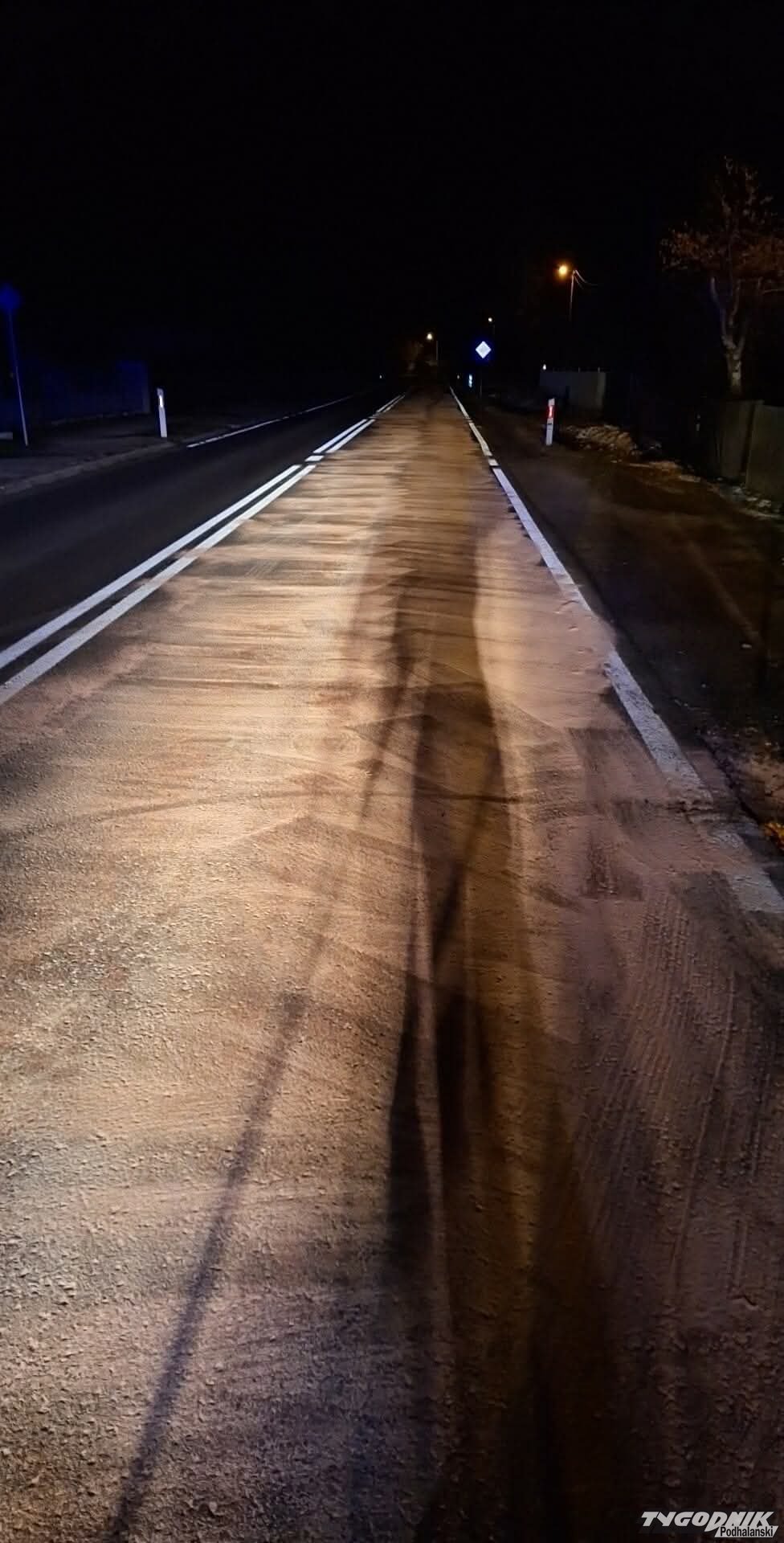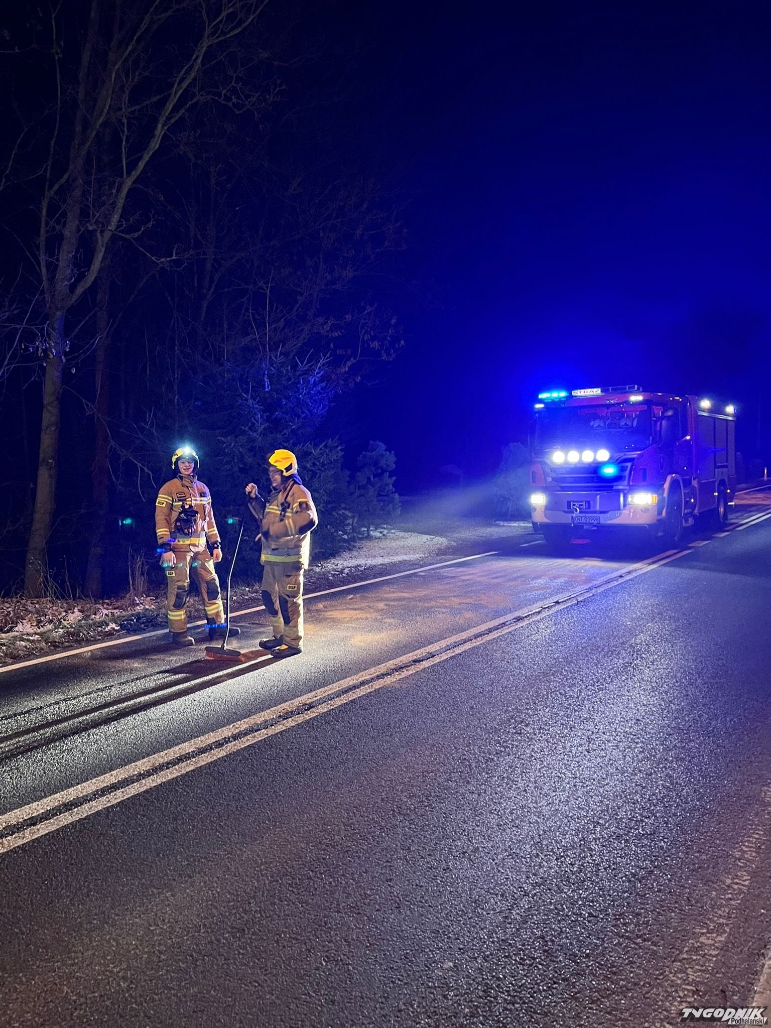 Wielka plama oleju na drodze w Zubrzycy Górnej