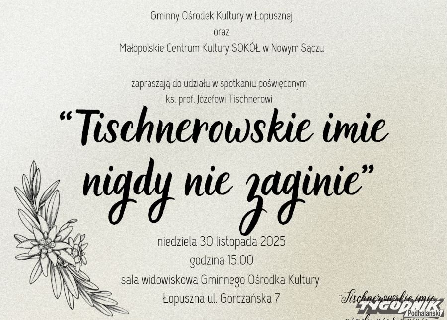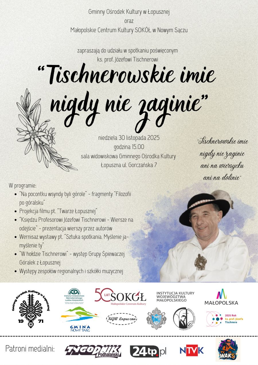 W imieniu organizatorów zapraszamy na spotkanie poświęcone Ks. Prof. Józefowi Tischnerowi zatytułowane "Tischnerowskie imie nigdy nie zaginie".