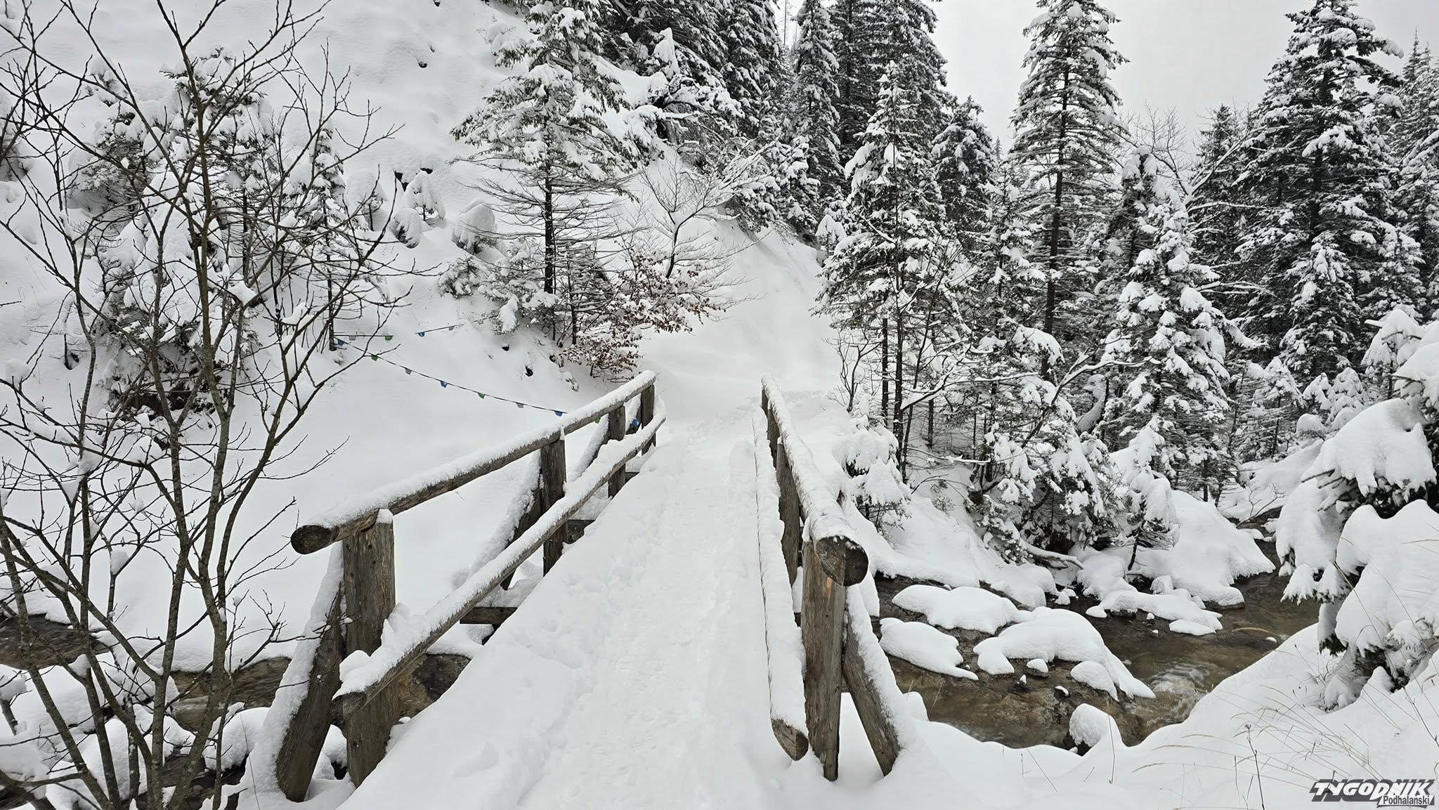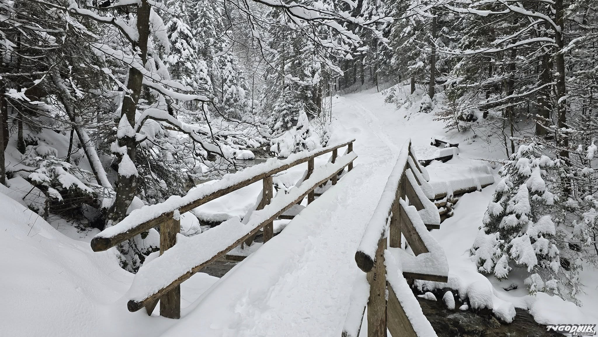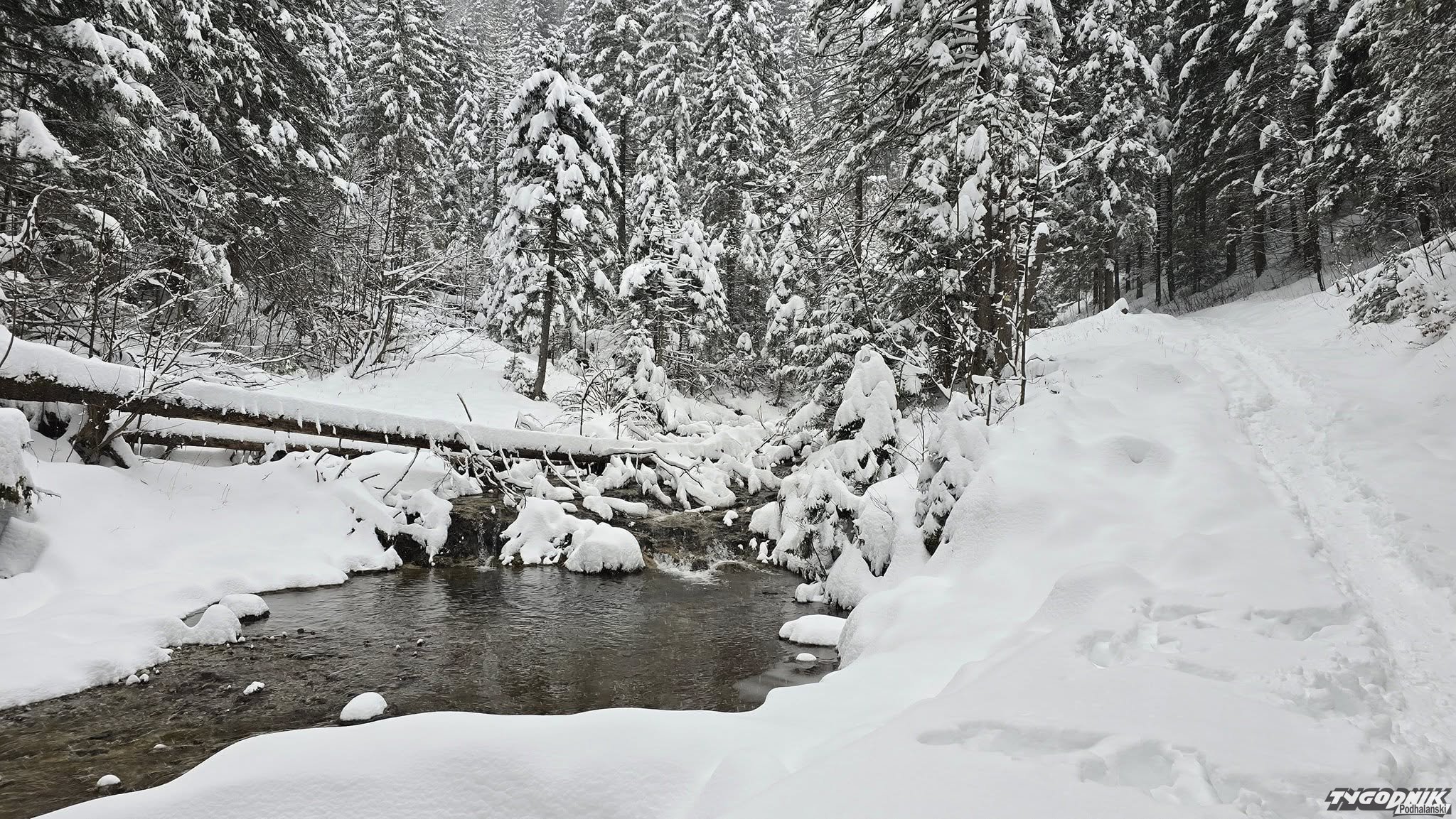 Śnieg zaczął sypać w nocy z czwartku na piątek i spadło już ok. 30 cm białego puchu. Na razie odradzamy wychodzenie powyżej tatrzańskich schronisk. Najlepiej pozostać w dolinach, które są w miarę przetarte. Wyżej zalega gruba warstwa śniegu. Do 1800 metrów n. p. m. obowiązuje pierwszy stopień zagrożenia lawinowego, powyżej drugi. Śnieg ma padać także w sobotę i w niedzielę rano, ale opady będą już mniej intensywne. My dziś odwiedziliśmy Dolinę Białego, ścieżka jest przetarta, a krajobrazy po prostu bajkowe.