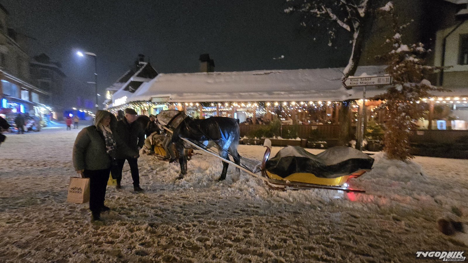 Na deptaku bardzo wielu turystów, słychać język węgierski, słowacki, czeski. Krupówki pokryte są warstwą śniegu, więc fiakrzy mogli zamienić koła na płozy. Na przejażdżkę saniami decyduje się sporo osób. Ok. godz. 17 zaczął sypać śnieg, a największe opady spodziewane są w nocy.