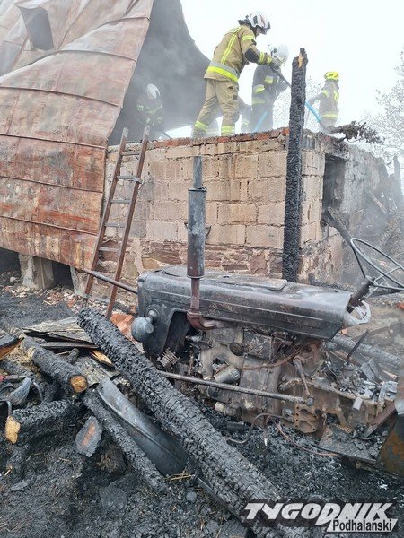 Spłonęły stodoła ze sprzętem rolniczym i poddasze przyległego domu.