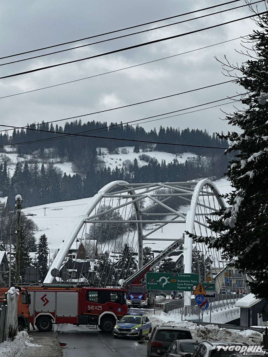 W wyniku gwałtownej odwilży śnieg i lód zalegający na moście zaczął szybko topnieć i stanowił zagrożenie dla samochodów czy pieszych. Na miejsce wezwano strażaków, którzy usuwają śnieg z elementów mostu. Przypomnijmy, że w nocy ma padać deszcz, a w środę temperatura zacznie stopniowo spadać i opady deszczu zaminią sie w opady sniegu.