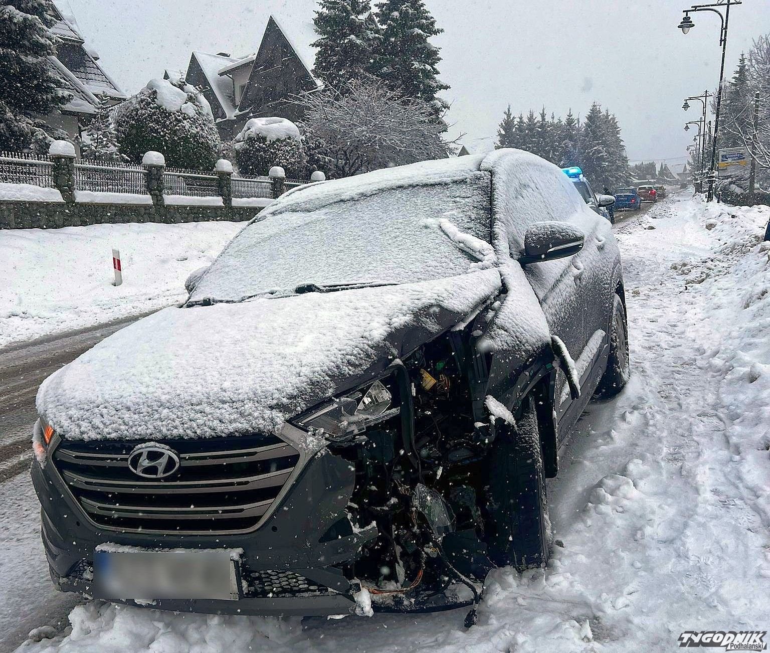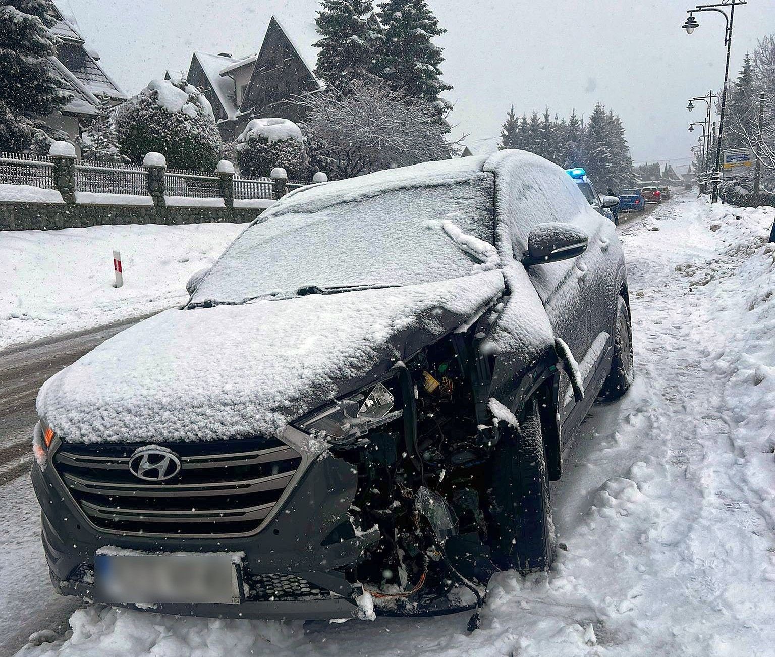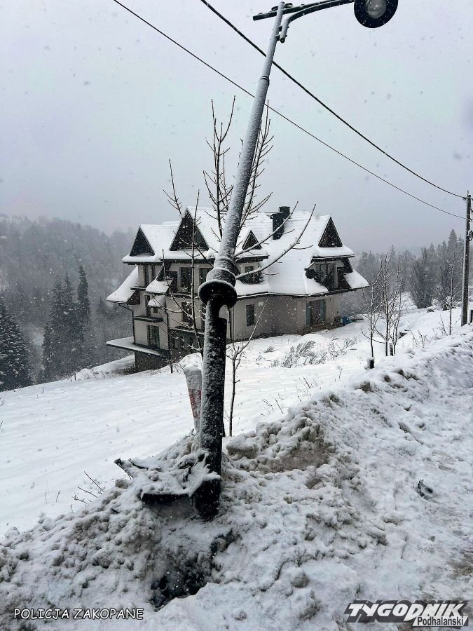 W Bukowinie Tatrzańskiej doszło do groźnie wyglądającej kolizji - prowadzący samochód osobowy zjechał z drogi i uderzył w przydrożną lampę.