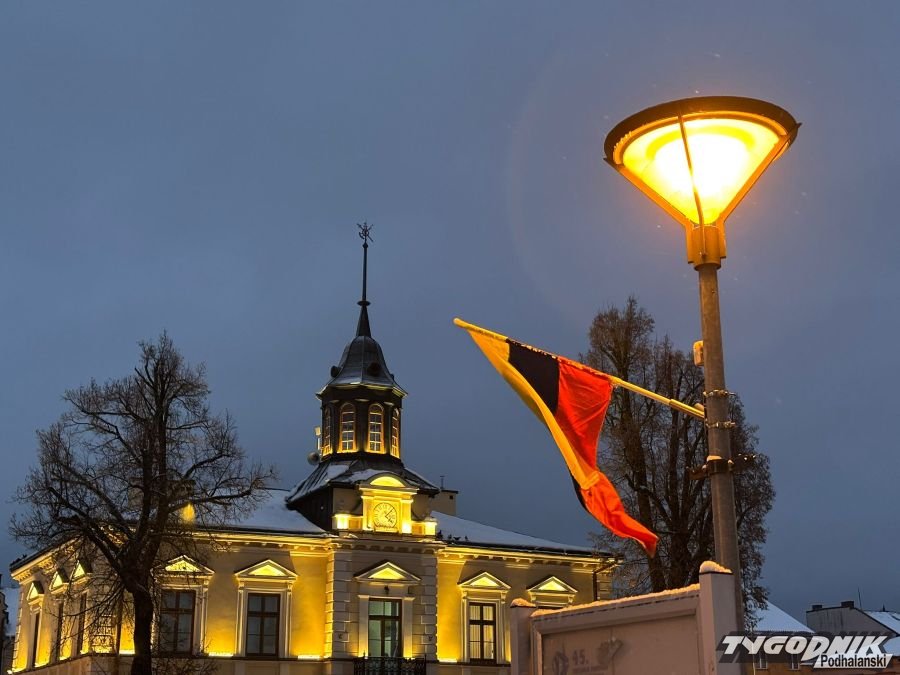 Na ulicach Nowego Targu pojawiły się żółto-niebiesko-czerwone flagi.