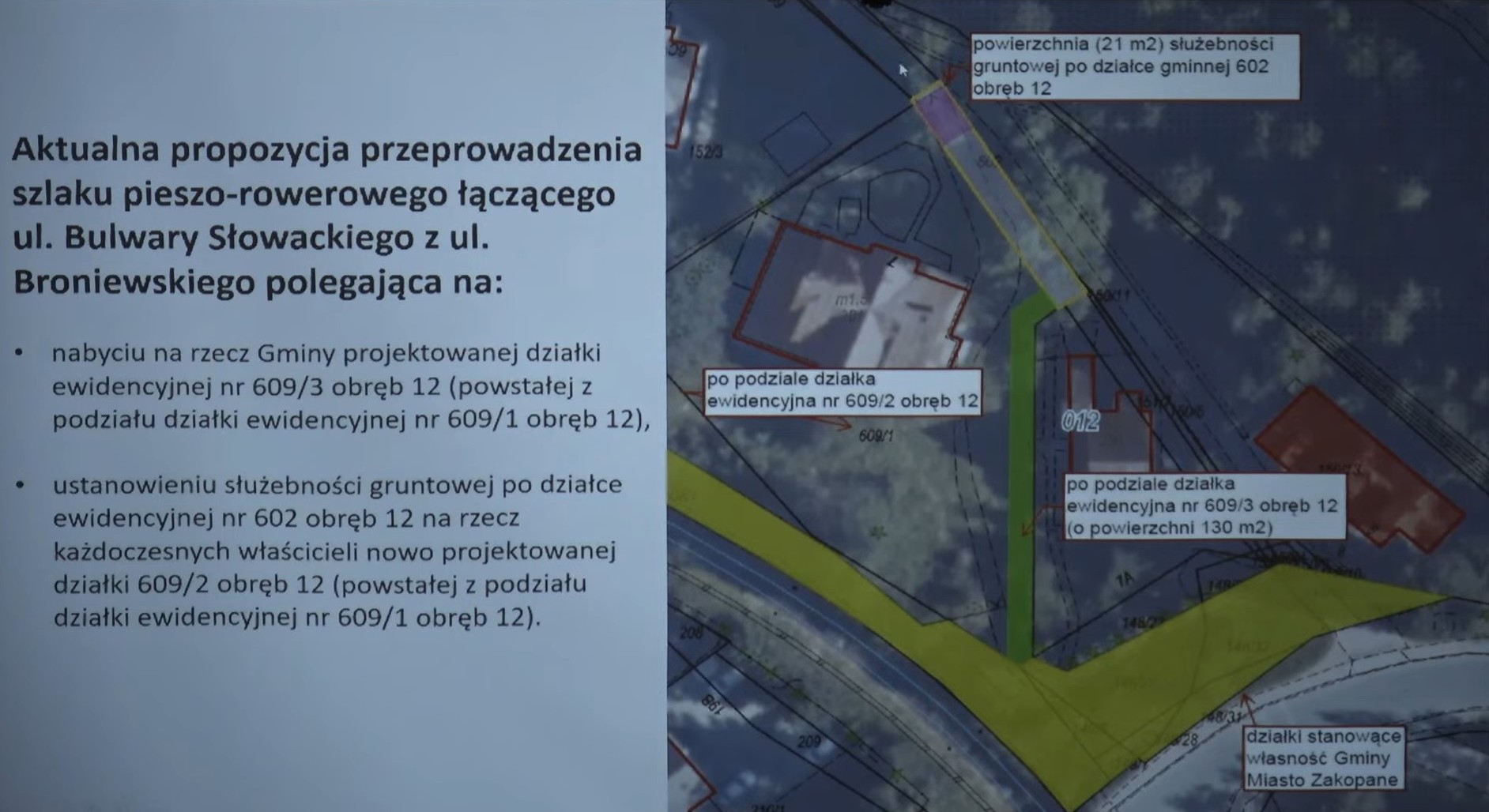 Zakopiańscy radni podjęli decyzję o zakupie działki przy Bulwarach Słowackiego. Oznacza to zmianę przebiegu przejścia, które w maju zostało zamknięte przez prywatnych inwestorów. Zdaniem wiceburmistrza Bartłomieja Bryjaka nowe rozwiązanie jest korzystniejsze dla gminy, jednak część radnych ocenia, że doprowadzi do niepotrzebnych kosztów i powstaniu trzech deweloperskich inwestycji.
