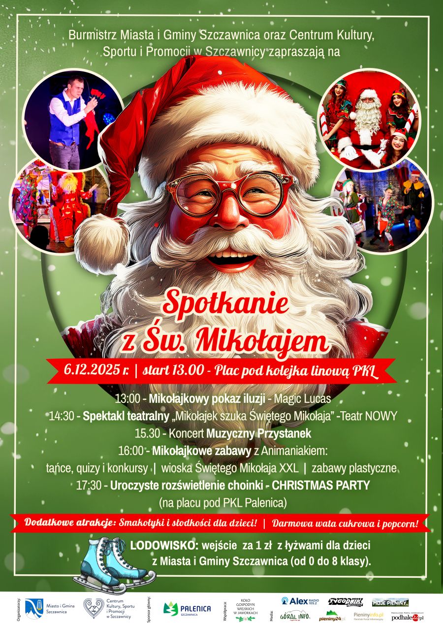 Miasto i Gmina Szczawnica oraz Centrum Kultury, Sportu i Promocji zapraszają dzieci wraz z rodzinami na Spotkanie ze Świętym Mikołajem, które odbędzie się w sobotę 6.12 na Placu pod kolejką linową PKL Palenica.