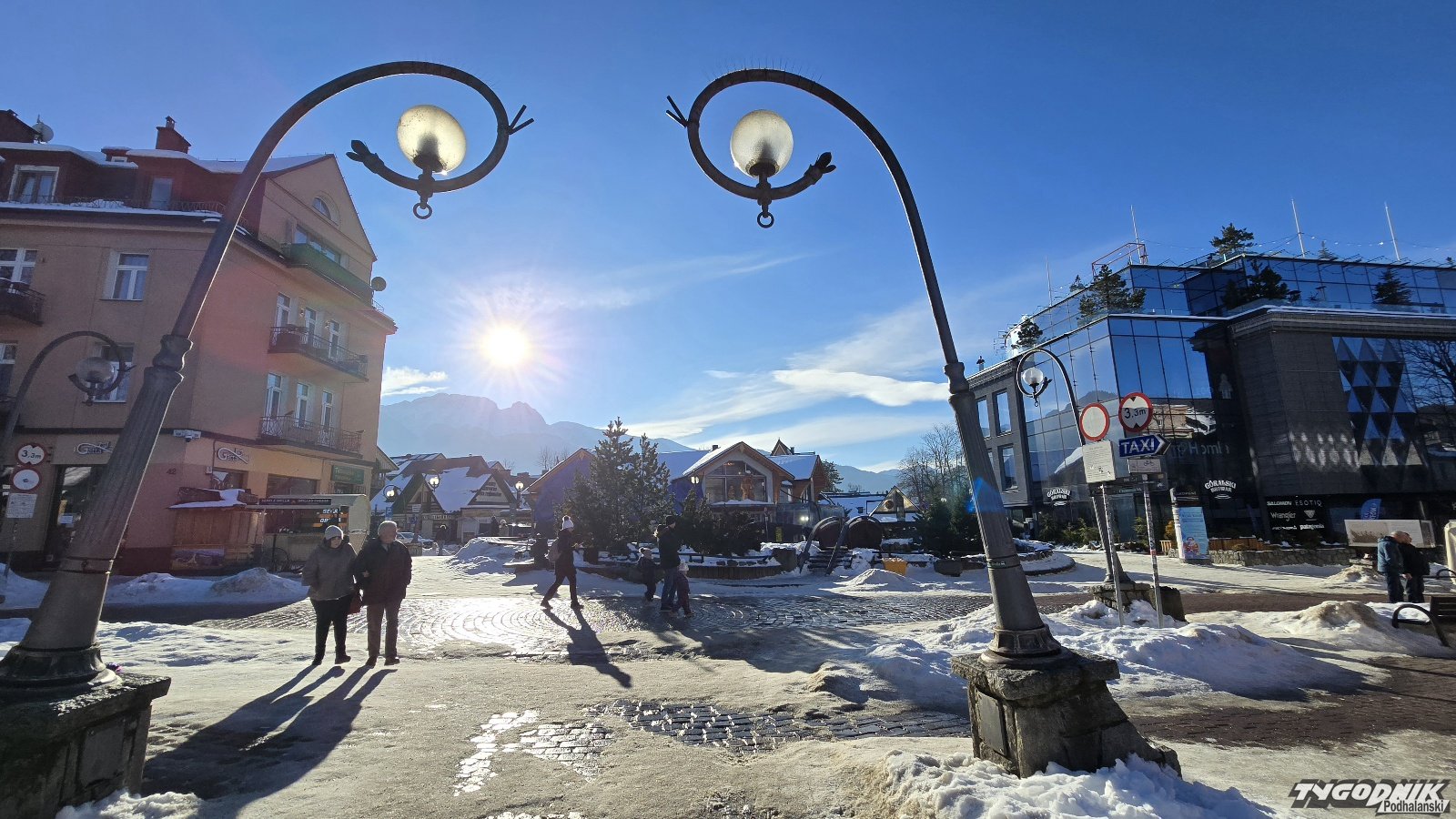 Termometry pokazują już 3 st. C., a w słońcu jest znacznie cieplej. Śnieg powoli topnieje, ale w nocy wszystko zamarza, więc ubywa najwyżej parę centymetrów białego puchu na dobę. Na Krupówkach niewielu turystów, ale trudno się dziwić - mamy początek grudnia i środek tygodnia. Deptak z pewnością zapełni się już w najbliższy weekend.