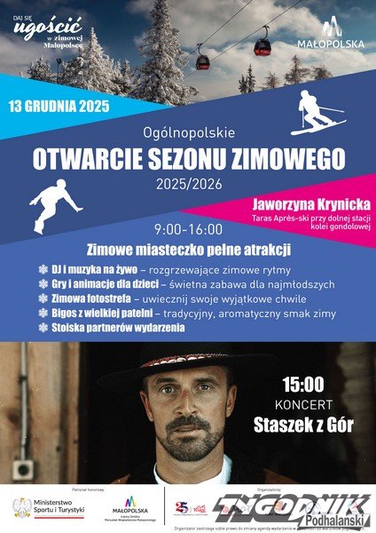 Będzie moc atrakcji, w tym koncert Stanisława Karpiela-Bułecki, czyli Staszka z Gór. Czy wielka odwilż nie pokrzyżuje planów organizatorom Ogólnopolskiego Otwarcia Sezonu 2025/2026 na Jaworzynie Krynickiej?