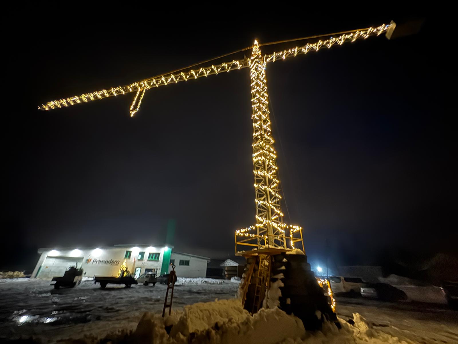 Potężny dźwig przystrojony setkami światełek wygląda zjawiskowo. Tuż obok tak samo świątecznie przyozdobiona koparka i spory kawał ogrodzenia. - Sześć godzin to wszystko robiliśmy. Wykorzystaliśmy specjalistyczną zwyżkę - śmieje się Sylwester Kołodziej, właściciel firmy Primadera.