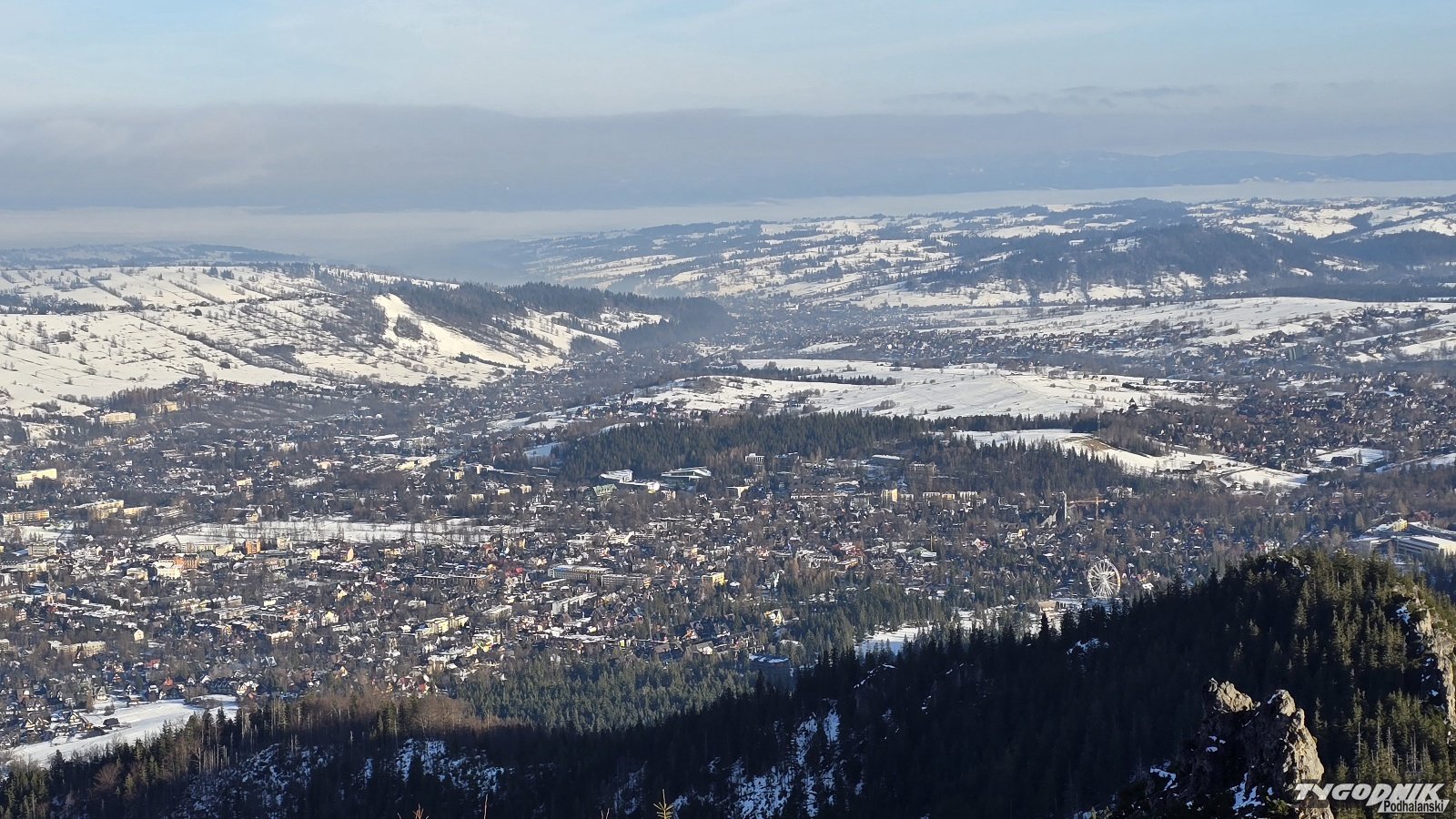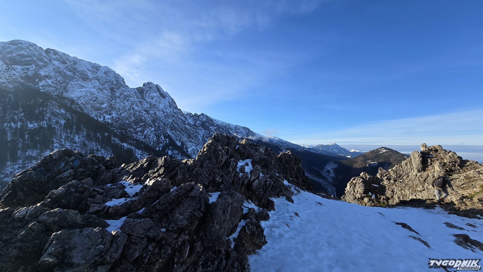 Z jednej strony Giewont na wyciągnięcie ręki, z drugiej widok na całe Zakopane i Gubałówki. Sarnia Skała to doskonały punkt widokowy. Prowadzą tu szlaki z Doliny Białego i Doliny Strążyskiej. Śnieg na szlaku miejscami zmrożony, niezbędne jest używanie przynajmniej raczków. W Tatrach pierwszy stopień zagrożenia lawinowego. W Zakopanem odwilż, temperatura ma wzrosnąć do 6 st. C., a w przyszłym tygodniu ma być jeszcze cieplej.