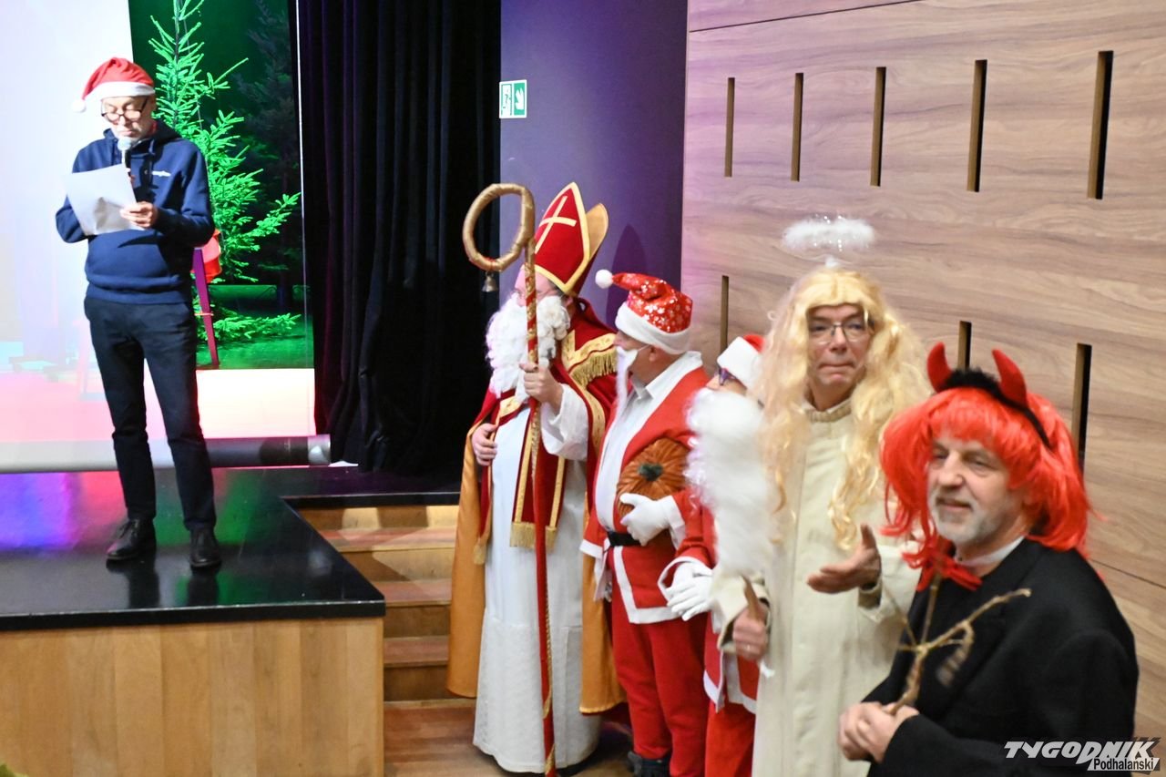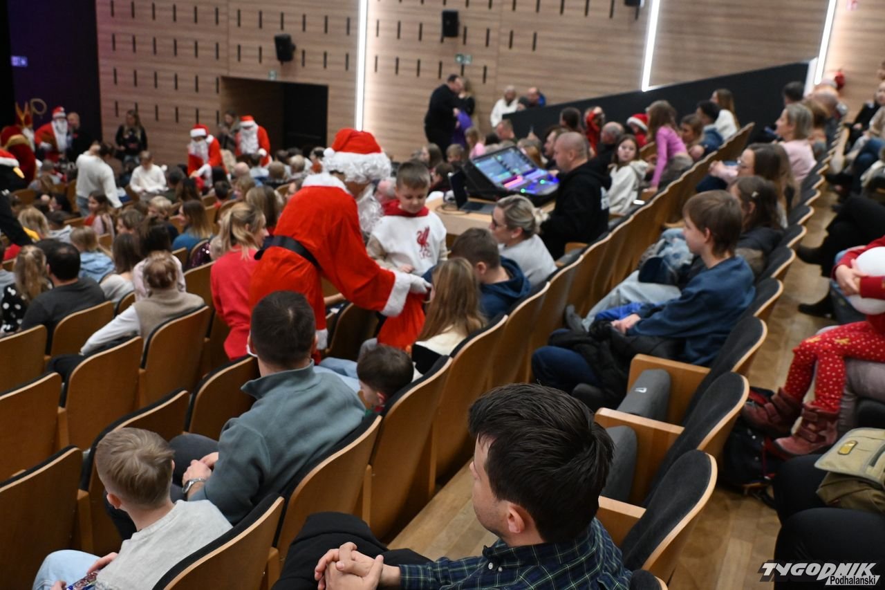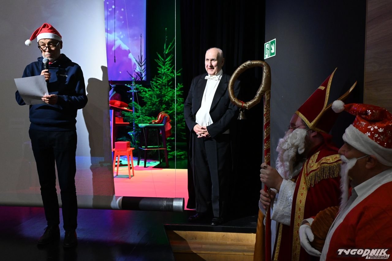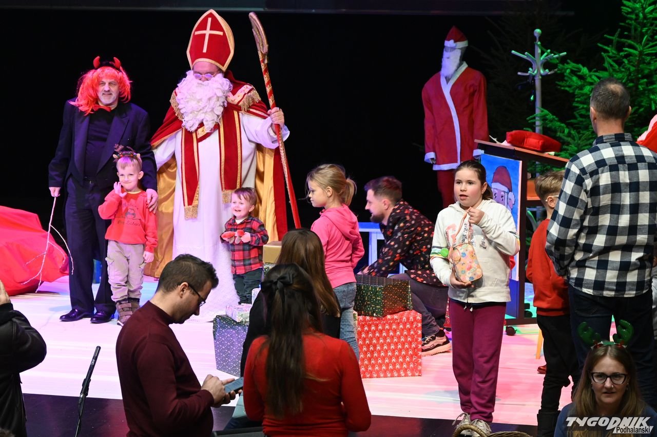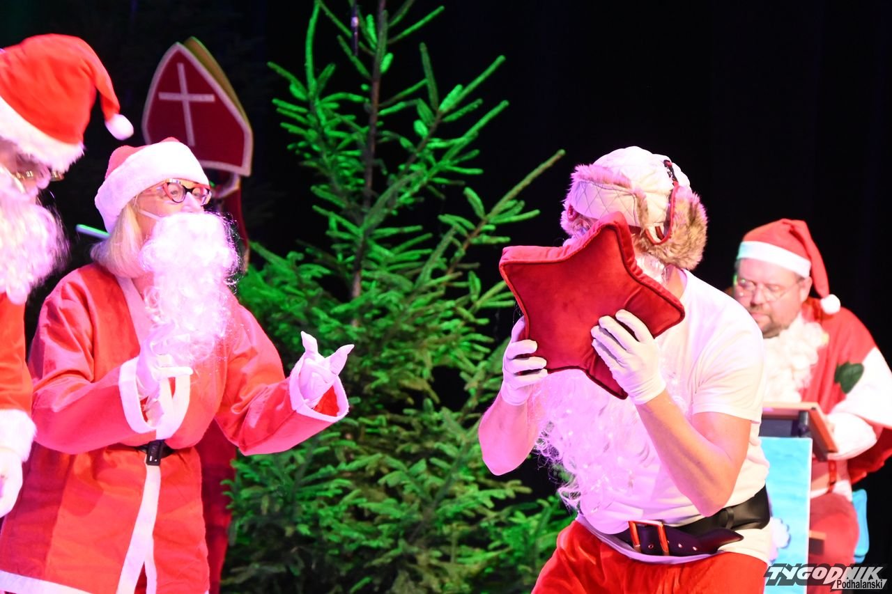 Scena Miejskiego Centrum Kultury w sobotnie popołudnie 6 grudnia zaroiła się od Świętych Mikołajów, którzy nie tylko rozdali prezenty, ale i zaprezentowali spektakl pt. "Mikołajowe sekrety".