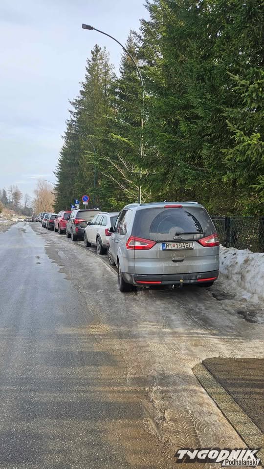 W ten weekend do Zakopanego przyjechało bardzo wielu turystów, niektórzy zostawili auta na chodniku.