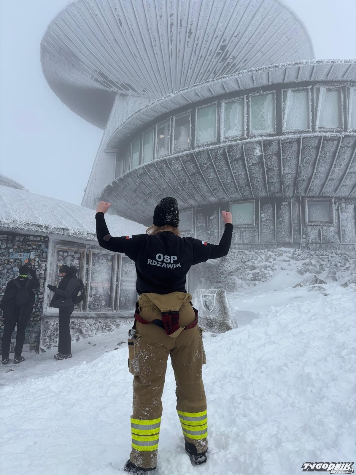 Druhny OSP Rdzawka - w pełnym umundurowaniu bojowym - zawędrowały na Śnieżkę