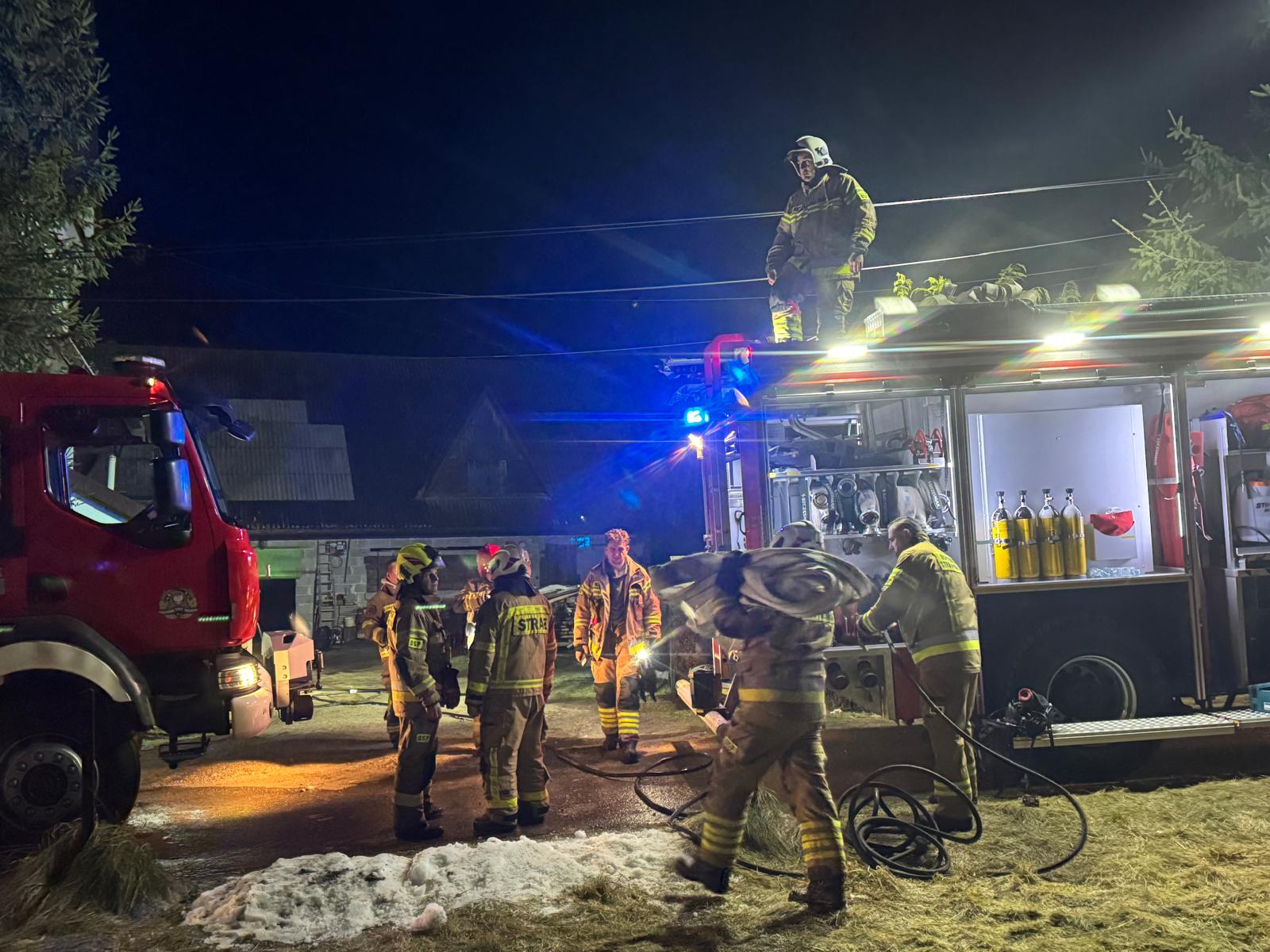 Strażacy gaszą pożar w jednym z budynków w Piekielniku w gminie Czarny Dunajec.