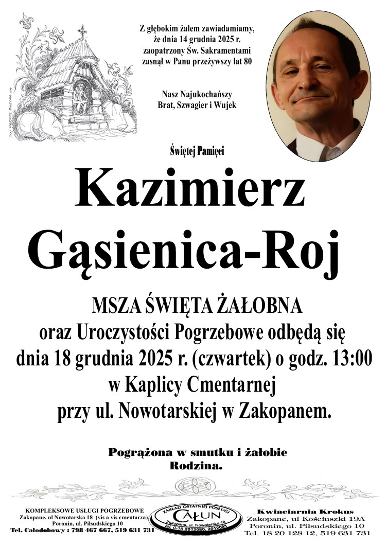 2025-12-15 14:02 Drzwi zewnętrzne do mieszkania w bloku - czy naprawdę są potrzebne? 2025-12-15 13:58 Atak bezpańskich psów na hodowlę danieli 2025-12-15 13:55 Przerwy w dostawie wody w Poroninie w związku z modernizacją sieci wodociągowej 2025-12-15 13:48 Zarzuty za posiadanie narkotyków 2025-12-15 13:05 Menu i ceny sprzed 10 lat?! Restauracja Schronisko Bukowina świętuje jubileusz! 2025-12-15 13:00 W Nowym Targu zimniej niż w Zakopanem, a najcieplej na Gubałówce i w Tatrach (WIDEO) 2025-12-15 12:00 Quady zatrzymane na Bachledzkim Wierchu. Interwencja Straży Miejskiej 1 2025-12-15 11:31 Siedmiodniowa podróż: Riwiera Omiška, połączenie morza, natury i niezapomnianych wrażeń 2025-12-15 11:30 "Idzie na ziemię Jezusek". Koncert kolęd 2025-12-15 11:01 Przyczyny wypadania włosów - poznaj najczęstsze powody i dowiedz się, gdzie szukać pomocy 2025-12-15 10:58 Znamy szczegóły wypadku na Kozim Wierchu 3 2025-12-15 10:41 Dlaczego iluzja wciąż fascynuje w erze VR i AI? Analiza mózgu i percepcji 2025-12-15 09:43 Turystka uniknęła śmierci. Spadła z Koziego Wierchu 2 2025-12-15 09:00 Boisko piłkarskie API w rozbiórce 3 2025-12-15 08:00 Kolędowanie w Atmie z zespołem Jedla 2025-12-14 21:53 Michał Przedlacki dziennikarzem roku (WIDEO) 2025-12-14 21:00 Premiera teledysku Mój dom Hanny Zbyryt (WIDEO) 2025-12-14 19:59 O zmierzchu na Przysłopie Miętusim 1 2025-12-14 19:04 Potrącenie pieszej w Zębie. Droga częściowo zablokowana 8 2025-12-14 18:20 Zakopane - oddam za darmo MEBLOŚCIANKĘ, SZAFKĘ i BIEŻNIĘ TC-140 2025-12-14 18:00 70-lecie NZPS "Podhale" i 10-lecie Stowarzyszenia Kombinat Podhale 3 2025-12-14 17:00 Ostatnie wolne miejsca na bezpłatny kurs narciarstwa biegowego dla dzieci 2025-12-14 16:00 Droga wjazdowa do Szczawnicy po odbiorze technicznym 9 2025-12-14 15:00 Rosną domki na Wyskówkach, nadzór budowlany sprawdza legalność inwestycji 18 2025-12-14 14:30 Świąteczna atmosfera bez granic. X Jarmark Bożonarodzeniowy w Sromowcach Niżnych 2025-12-14 14:00 Po porannych chmurach wyszło słońce. Przed nami słoneczny tydzień 2025-12-14 12:59 Wskrzeszanie dawnych tradycji w Szczawnicy. Noc św. Łucji (ZDJĘCIA, WIDEO) 2025-12-14 12:00 Nowe rondo na starej Zakopiance otwarte 2025-12-14 11:00 Gdy źródła zamilkną 1 2025-12-14 10:30 Remont ścieżki rowerowej zakończony 3 2025-12-14 10:00 Uczniowie "Hotelarza" rozbili bank, zgarnęli aż 17 stypendiów starosty 2025-12-14 09:01 Zakopane - sprzedam KOMPLET: STÓŁ + KRZESŁA 2025-12-14 09:00 Władysław Matlakowski. Potęga umysłu 2025-12-14 08:00 Przy wigilijnym stole olimpijczycy z różnych pokoleń 3 2025-12-13 21:45 Młoda rysica czeka na imię. Tatrzański park ogłosił konkurs 9 2025-12-13 20:41 Pożar w Piekielniku 1 2025-12-13 20:03 Dynamiczny koncert Passport Control na Jarmarku Bożonarodzeniowym (WIDEO) 2 2025-12-13 19:04 Na Krupówkach turystów nie brakuje (WIDEO) 1 2025-12-13 18:17 Czterech Polaków w drugiej serii 3 2025-12-13 18:05 Śniadanie na Rusinowej Polanie (WIDEO) 4 2025-12-13 17:00 Jedzie furgonetka ze Szlachetną Paczką 1 2025-12-13 16:00 Klatka Ninja Warrior prawie gotowa 1 2025-12-13 15:36 Jarmark świąteczny w Lasku 1 2025-12-13 15:30 W poniedziałek rozpoczyna się Jarmark Bożonarodzeniowy w Nowym Targu 2025-12-13 15:00 Podwyżki dla sołtysów z terenu gminy Jabłonka 2025-12-13 14:00 To nie wiaty dla wózków, przy Biedronkach w Zakopanem pojawią się butelkomaty 2 2025-12-13 13:00 Pociąg wjechał do wyremontowanej stacji w Rabce-Zarytem 4 2025-12-13 12:33 Dziś świętej Łucji 2025-12-13 12:00 Turysta spadł ze zbocza Małego Giewontu 1 2025-12-13 11:01 Drzewo inspiracji - rok twórczych spotkań w Fundacji Pod Jasieniami