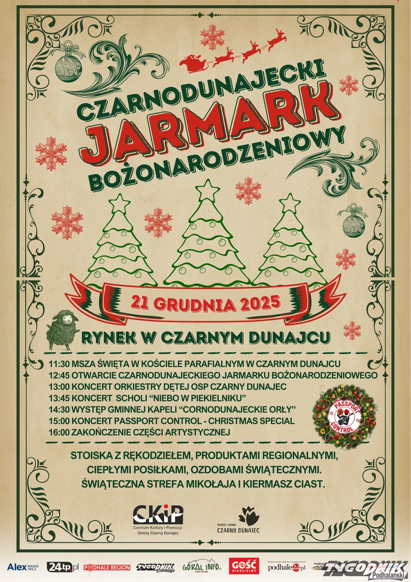 Miasto i Gmina Czarny Dunajec serdecznie zaprasza mieszkańców oraz gości na Czarnodunajecki Jarmark Bożonarodzeniowy, który odbędzie się 21 grudnia (niedziela) na rynku w Czarnym Dunajcu.