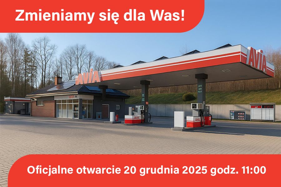 Mieszkańcy regionu mogą spodziewać się ważnej zmiany. Dotychczasowa stacja paliw przechodzi rebranding i od teraz będzie działać pod międzynarodową marką AVIA. Oficjalne otwarcie w nowej odsłonie odbędzie się 20 grudnia 2025 r. (sobota) od godziny 11:00.