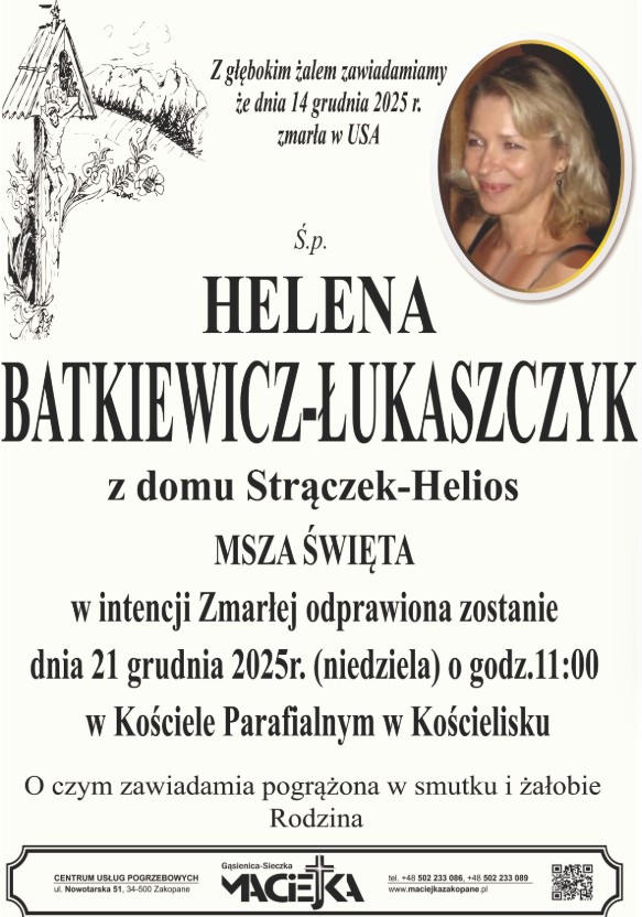 2025-12-16 17:00 Bez uprawnień, za to z promilami za kierownicą 2025-12-16 16:30 Przed nami Slalom Maraton Zakopane 2025-12-16 16:00 90 milionów złotych na inwestycje. Więcej pieniędzy na kulturę i sport 2025-12-16 15:30 Zmasowane policyjne kontrole na drogach powiatu nowtarskiego 2025-12-16 15:00 Pierwsze prognozy na Święta. Dziś inwersja i wysoka temperatura w Tatrach (WIDEO) 2025-12-16 14:00 Nowa tablica przy stacji meteo na Hali Gąsienicowej. Ciekawe dane meteo 2025-12-16 13:40 Anioły są bliżej, niż myślisz. Mamy dla Was książki 2025-12-16 13:33 SPRZEDAM MIESZKANIE w Krakowie, świetna lokalizacja 2025-12-16 13:30 Tatrzańskie szlaki są oblodzone i śliskie 2025-12-16 13:00 Fenomenalny debiut Grzegorza Galicy 2025-12-16 12:54 Zakopane - sprzedam PIĘKNY DREWNIANY KOMPLET 2025-12-16 12:30 Zakopiański Salon Muzyczny. Pieśni Mieczysława Karłowicza 2025-12-16 12:00 Święto ludzi o wielkim sercu. Powiatowe Obchody Dnia Wolontariusza w Teatrze Witkacego 2025-12-16 11:00 Pół miliona na spór z wykonawcą. Zakopane szykuje się na proces 3 2025-12-16 10:43 Najbardziej nietypowe języki świata - jak nowoczesna technologia radzi sobie z ich tłumaczeniem? 2025-12-16 10:30 Heródkowe gnotki - sztuka prostoty 2025-12-16 10:00 Czarnodunajecki Jarmark Bożonarodzeniowy już 21 grudnia 1 2025-12-16 09:30 Komunikat o zmianach w datach odbioru odpadów na święta 2025-12-16 09:00 Nowa atrakcja sportowa w Zakopanem. Tor Ninja Warrior już otwarty 4 2025-12-16 08:00 Mędrole w Ratuszu czyli Stanisława Apostoła interpretacja filozofii księdza Tischnera 2025-12-16 06:59 Zakopane - sprzedam tanio różne BIURKA 2025-12-16 06:20 Zakopane - oddam za darmo BIEŻNIĘ TC-140 2025-12-15 21:46 Wigilia w Mieście na nowotarskim Rynku 2025-12-15 21:00 Miejsc na Sylwestra ubywa 8 2025-12-15 20:29 VI Jarmark Świąteczny w Poroninie 1 2025-12-15 19:57 Poważny wypadek na zakopiance 2025-12-15 19:30 Ludźmierskie spotkanie ze słowem 2025-12-15 19:00 Wolni od nałogów, silni w życiu 2025-12-15 18:21 Strażak z Lipnicy wyruszy na Rysy w umundurowaniu. Cel jest jeden: pomóc małej Darii 1 2025-12-15 17:46 Burmistrz Zakopanego i przewodniczący Rady Miasta w Cortina d'Ampezzo 21 2025-12-15 17:42 Oblodzone chodniki na ul. Broniewskiego w Zakopanem. Piesi muszą uważać 6 2025-12-15 17:19 Tragiczny wypadek na Orlej Perci. Nie żyje 20-letni turysta 4 2025-12-15 16:29 Utrudnienia drogowe w ruchu tunelem w ciągu zakopianki 2025-12-15 15:54 Wyprzedzał na przejściu dla pieszych. Dostał wysoki mandat 2025-12-15 15:45 Lodowisko na Rynku w Nowym Targu już otwarte 1 2025-12-15 14:59 Czy deptak może zmienić górską miejscowość w zimowy raj? 2 2025-12-15 13:58 Atak bezpańskich psów na hodowlę danieli 10 2025-12-15 13:55 Przerwy w dostawie wody w Poroninie w związku z modernizacją sieci wodociągowej 2025-12-15 13:48 Zarzuty za posiadanie narkotyków 1 2025-12-15 13:00 W Nowym Targu zimniej niż w Zakopanem, a najcieplej na Gubałówce i w Tatrach (WIDEO) 2025-12-15 12:00 Quady zatrzymane na Bachledzkim Wierchu. Interwencja Straży Miejskiej 9 2025-12-15 11:30 "Idzie na ziemię Jezusek". Koncert kolęd 2025-12-15 10:58 Znamy szczegóły wypadku na Kozim Wierchu 3 2025-12-15 09:43 Turystka uniknęła śmierci. Spadła z Koziego Wierchu 2 2025-12-15 09:00 Boisko piłkarskie API w rozbiórce 4 2025-12-15 08:00 Kolędowanie w Atmie z zespołem Jedla 2025-12-14 21:53 Michał Przedlacki dziennikarzem roku (WIDEO) 2025-12-14 21:00 Premiera teledysku Mój dom Hanny Zbyryt (WIDEO) 2025-12-14 19:59 O zmierzchu na Przysłopie Miętusim 1 2025-12-14 19:04 Potrącenie pieszej w Zębie. Droga częściowo zablokowana 8
