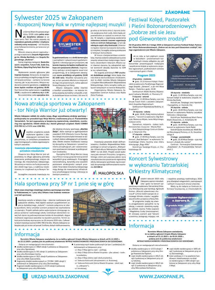 Grudniowa kolumna informacyjna Urzędu Miasta Zakopane.
