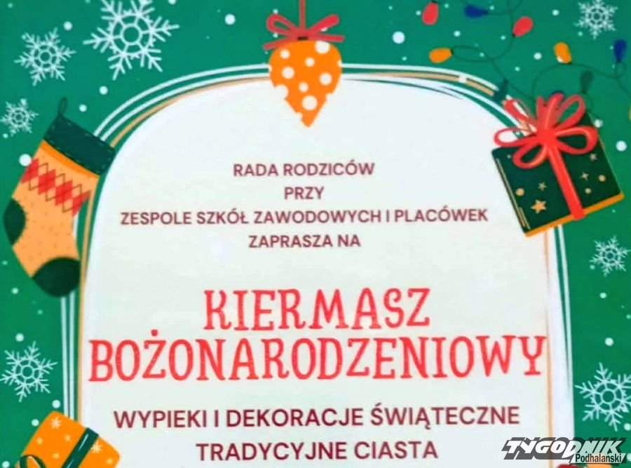 Rada Rodziców przy Zespole Szkół Zawodowych i Placówek w Krościenku zaprasza na Kiermasz Bożonarodzeniowy.