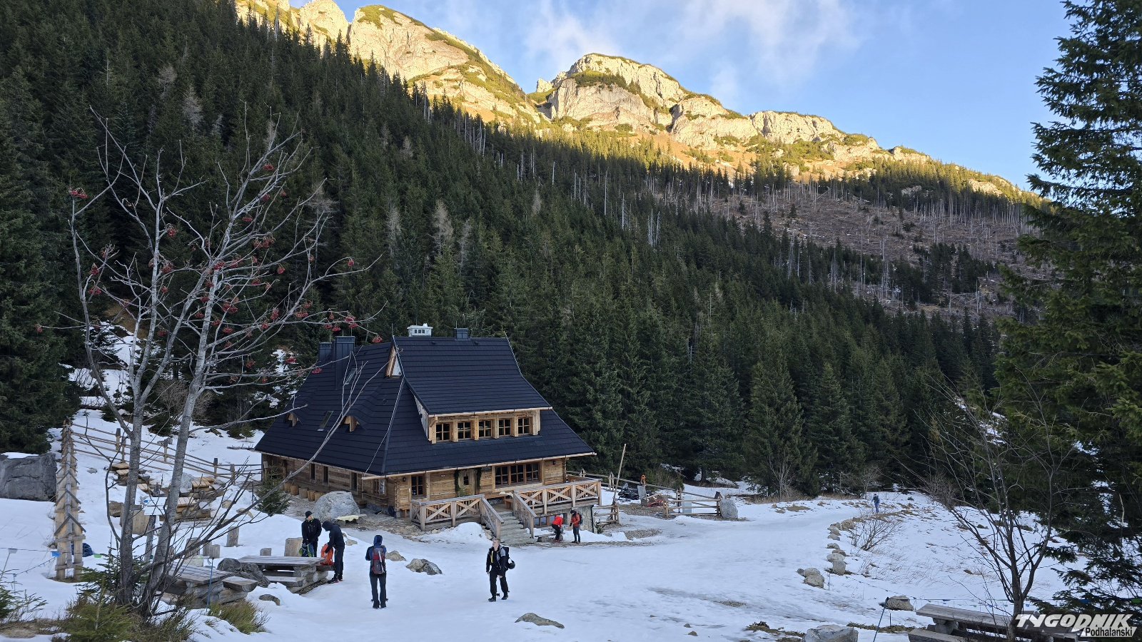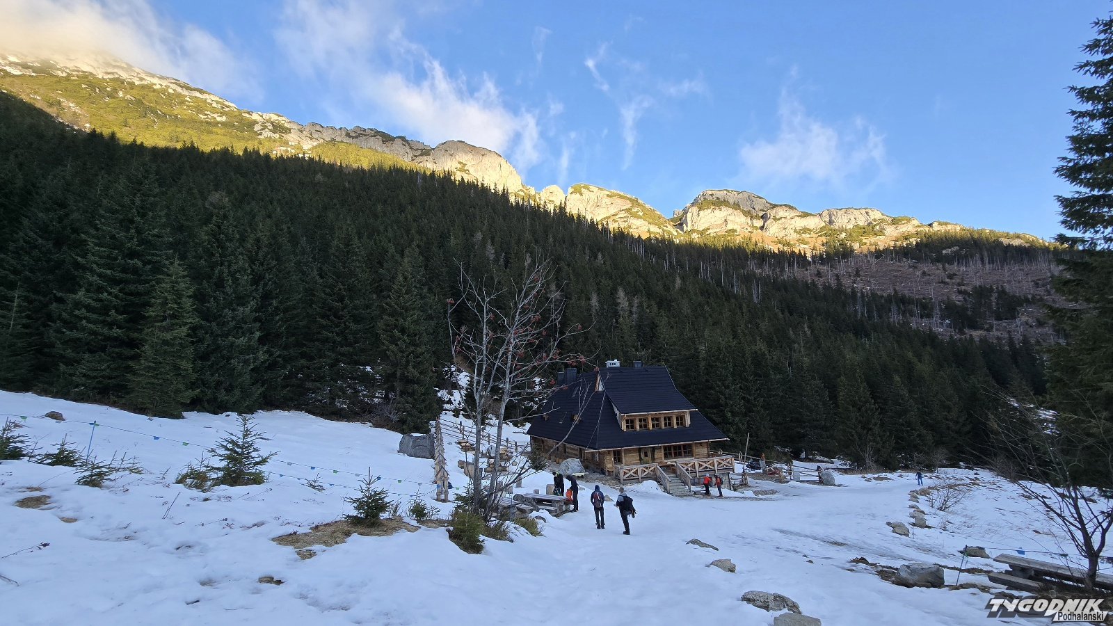 Na Hali Kondratowej dziś rano niewielu turystów. Wieje wiatr halny.
