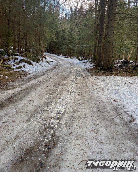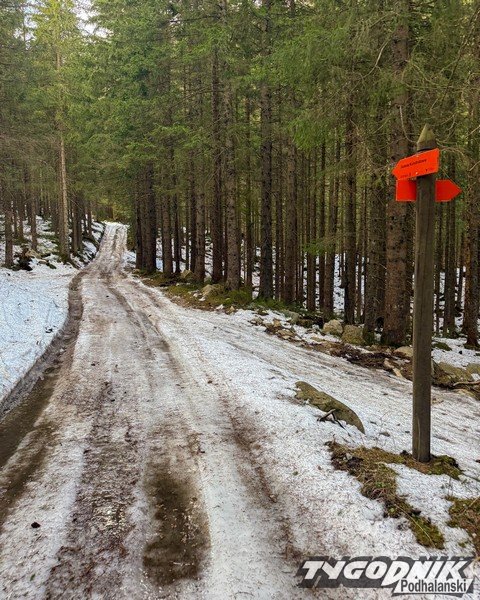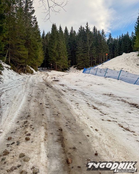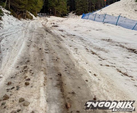Wyżej w Tatrach śnieg jest twardy i zmrożony, miejscami jak beton. Wystają kamienie.