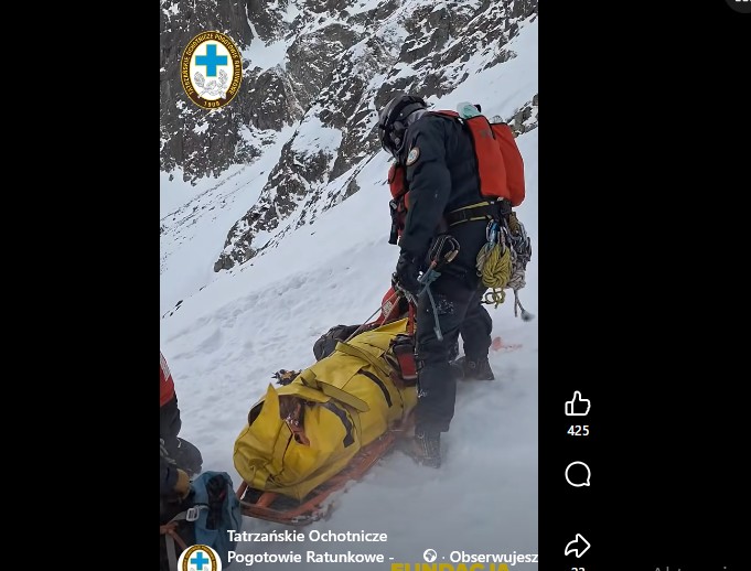 Turysta podczas zejścia Rysą stracił równowagę i spadł do wysokości około 1700 m n.p.m. Posiadał zimowe wyposażenie. Inne turystki pobłądziły w rejonie Przełęczy Karb.