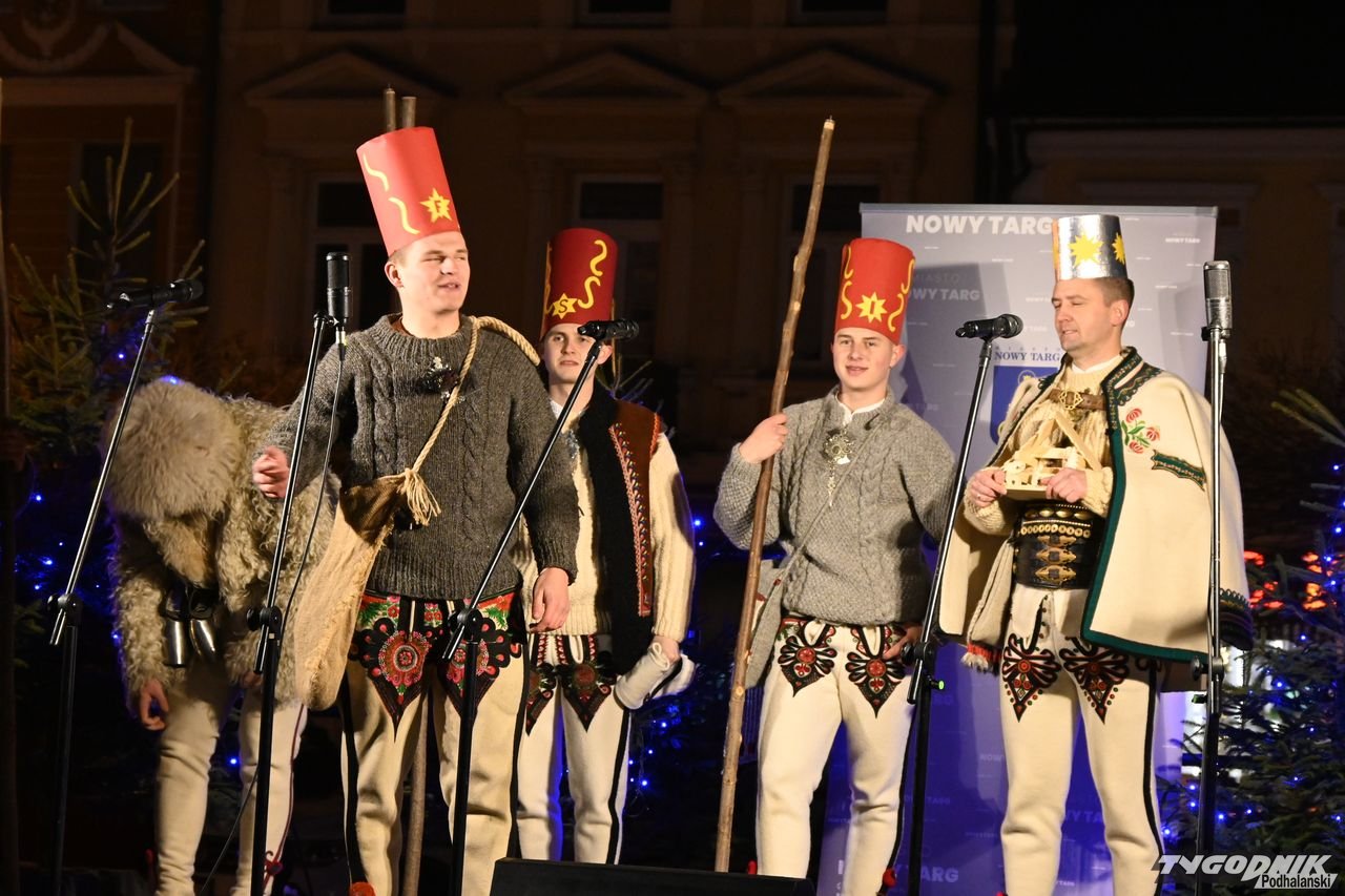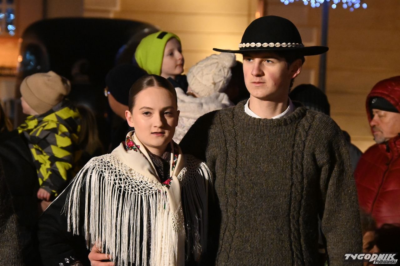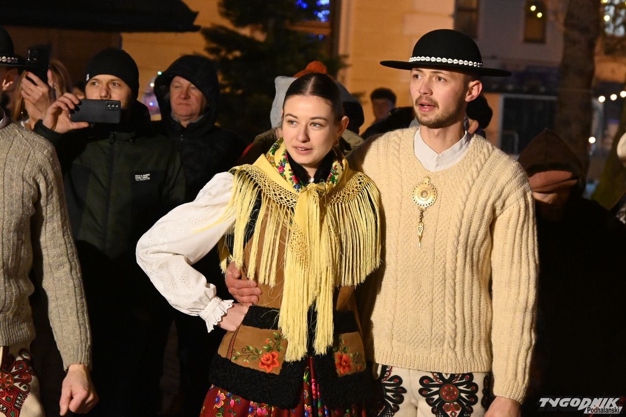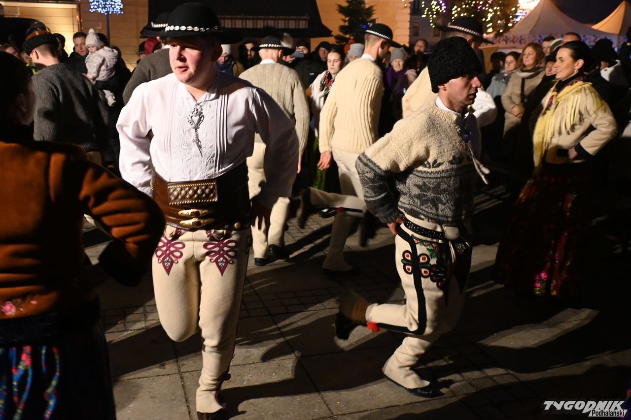 Wiele też w niedzielny wieczór działo się na plenerowej scenie. Roznosiły się stamtąd dźwięki kolęd. Przy szopce stała już rodzina w strojach regionalnych, a członkowie Związku Podhalan z Nowego Targu częstowali tradycyjną chałką. Nie zabrakło też tańca góralskiego przed sceną. Wszystko obserwowali nie tylko liczni nowotarżanie, był burmistrz Grzegorz Watycha i wicestarosta Robert Furca.