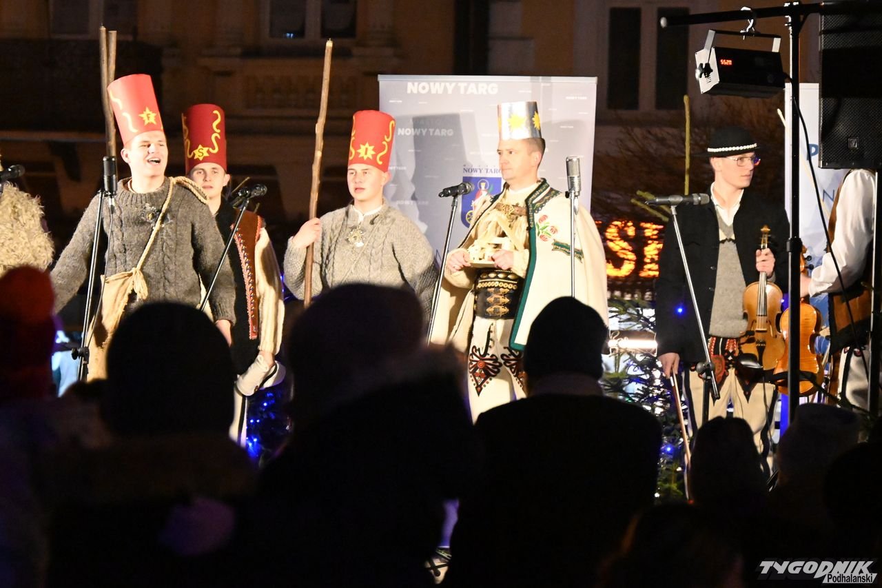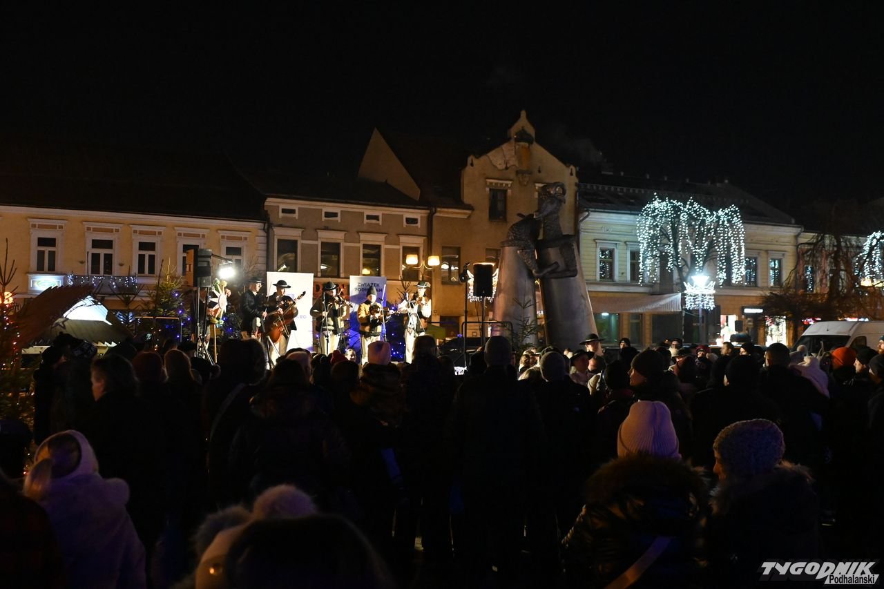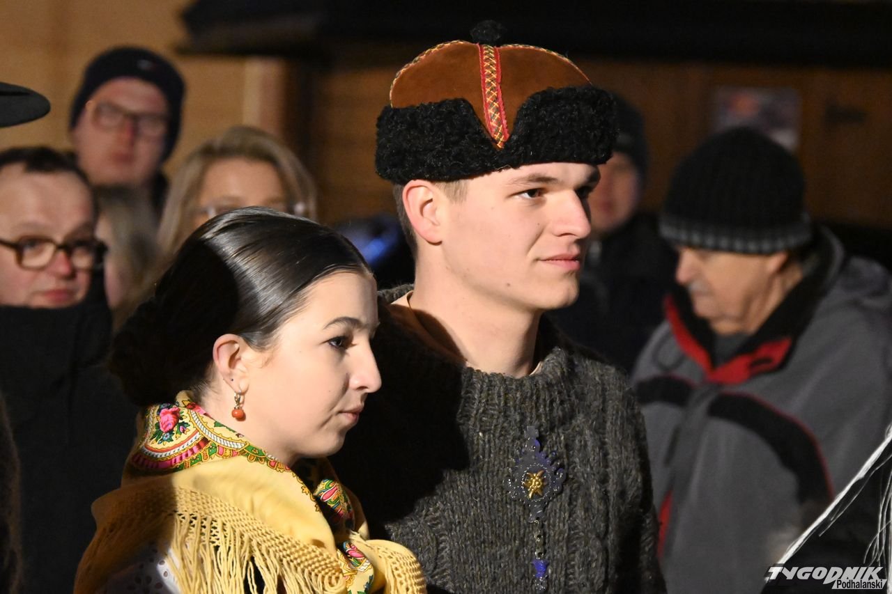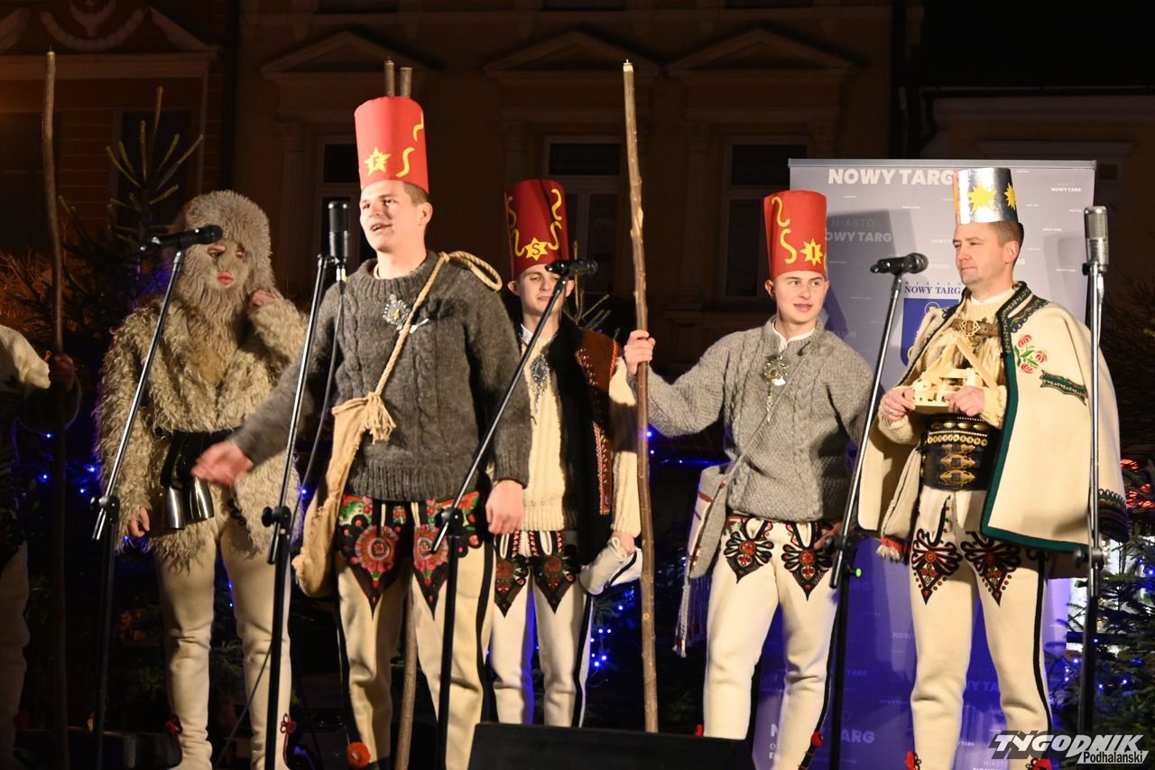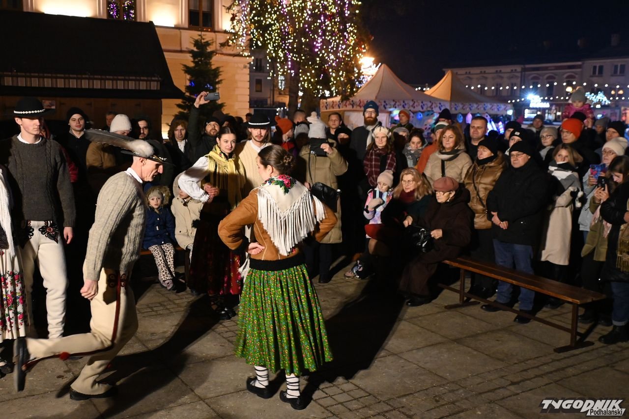 Wiele też w niedzielny wieczór działo się na plenerowej scenie. Roznosiły się stamtąd dźwięki kolęd. Przy szopce stała już rodzina w strojach regionalnych, a członkowie Związku Podhalan z Nowego Targu częstowali tradycyjną chałką. Nie zabrakło też tańca góralskiego przed sceną. Wszystko obserwowali nie tylko liczni nowotarżanie, był burmistrz Grzegorz Watycha i wicestarosta Robert Furca.
