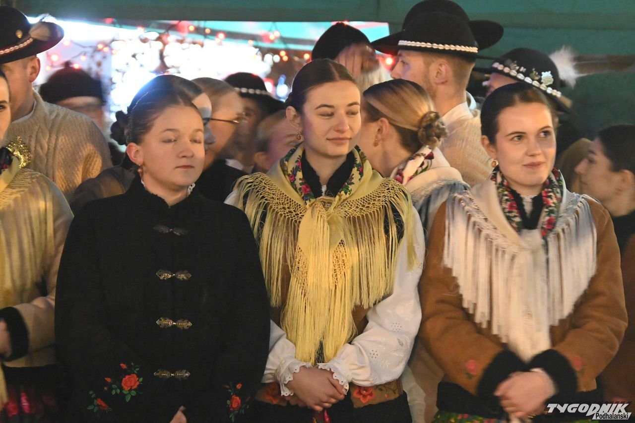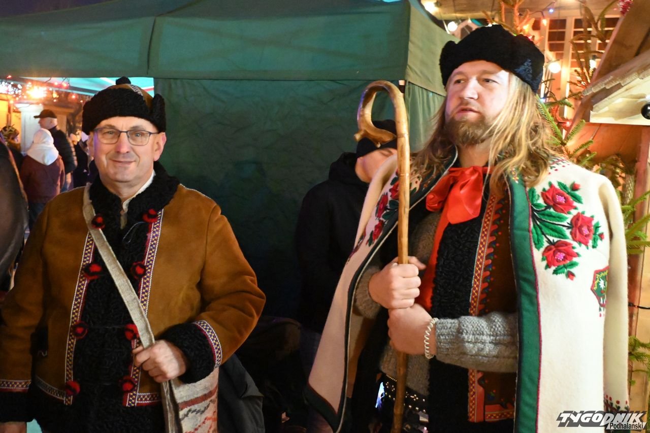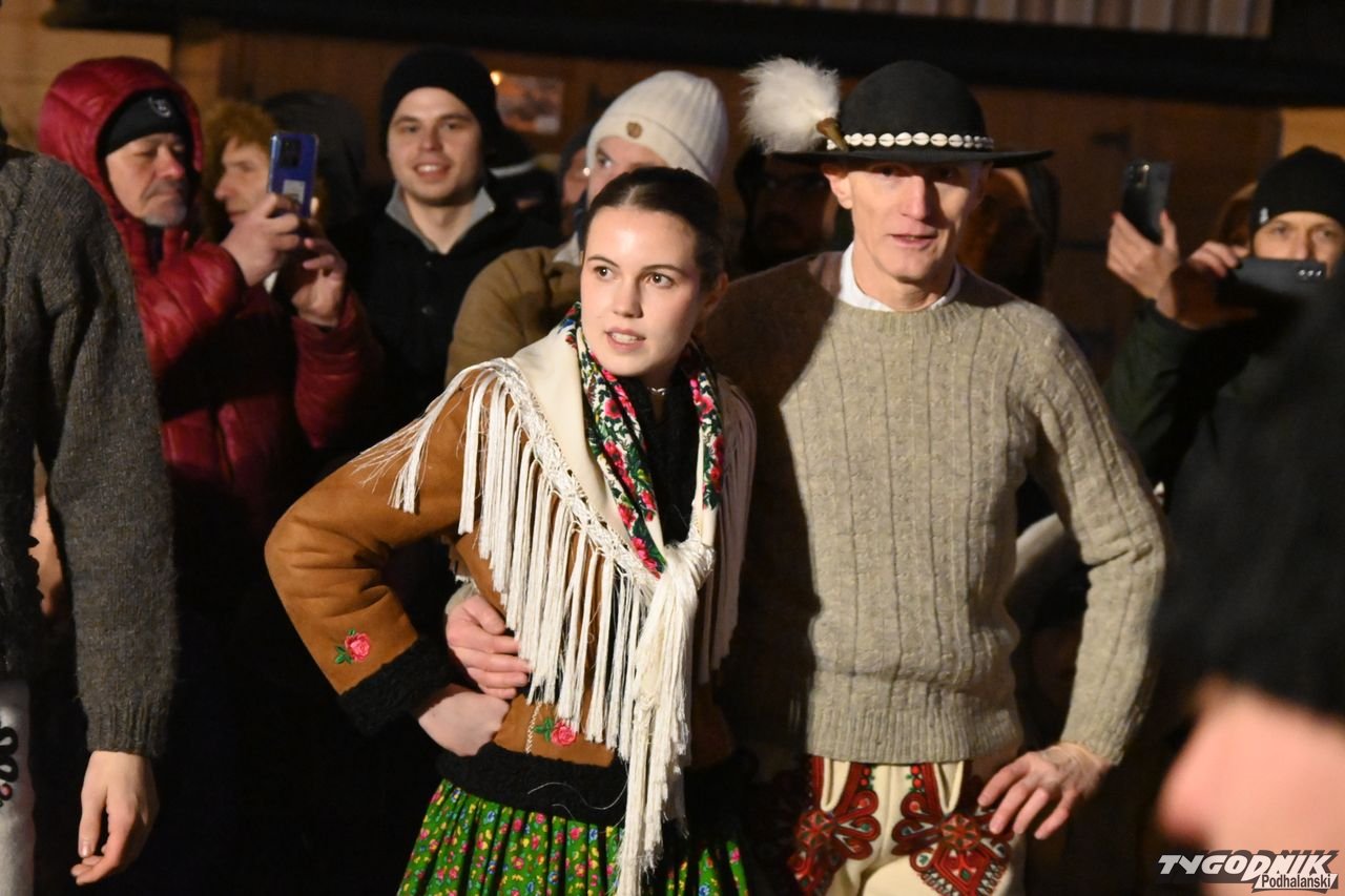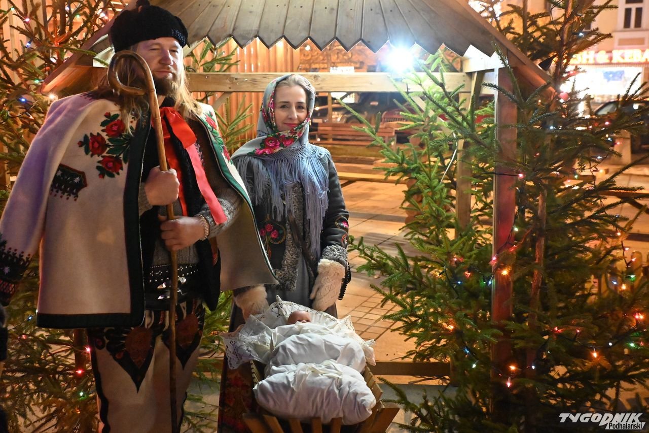 Wiele też w niedzielny wieczór działo się na plenerowej scenie. Roznosiły się stamtąd dźwięki kolęd. Przy szopce stała już rodzina w strojach regionalnych, a członkowie Związku Podhalan z Nowego Targu częstowali tradycyjną chałką. Nie zabrakło też tańca góralskiego przed sceną. Wszystko obserwowali nie tylko liczni nowotarżanie, był burmistrz Grzegorz Watycha i wicestarosta Robert Furca.