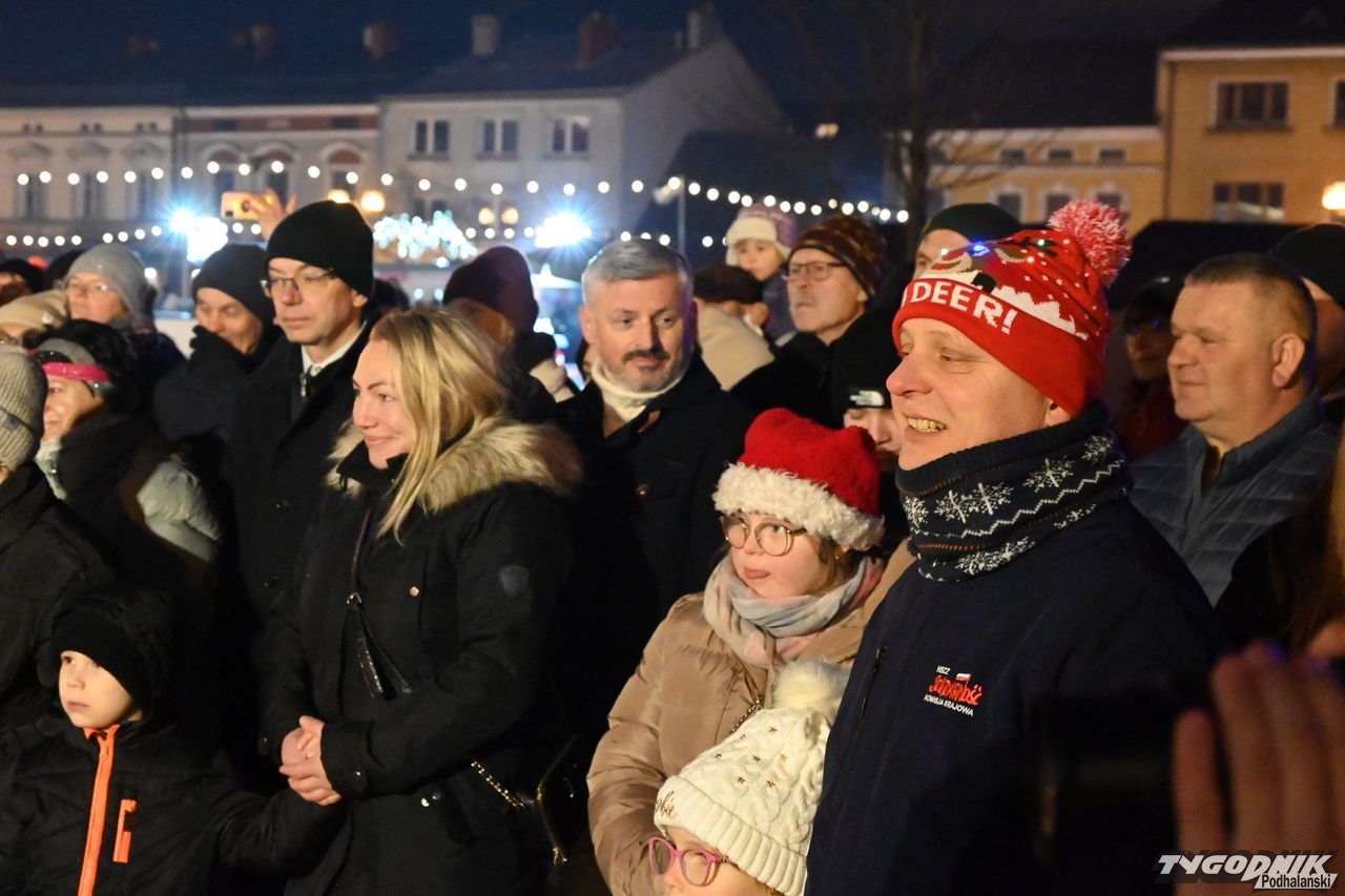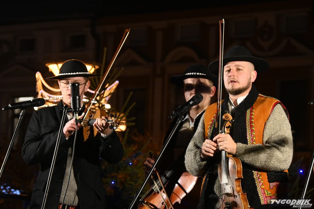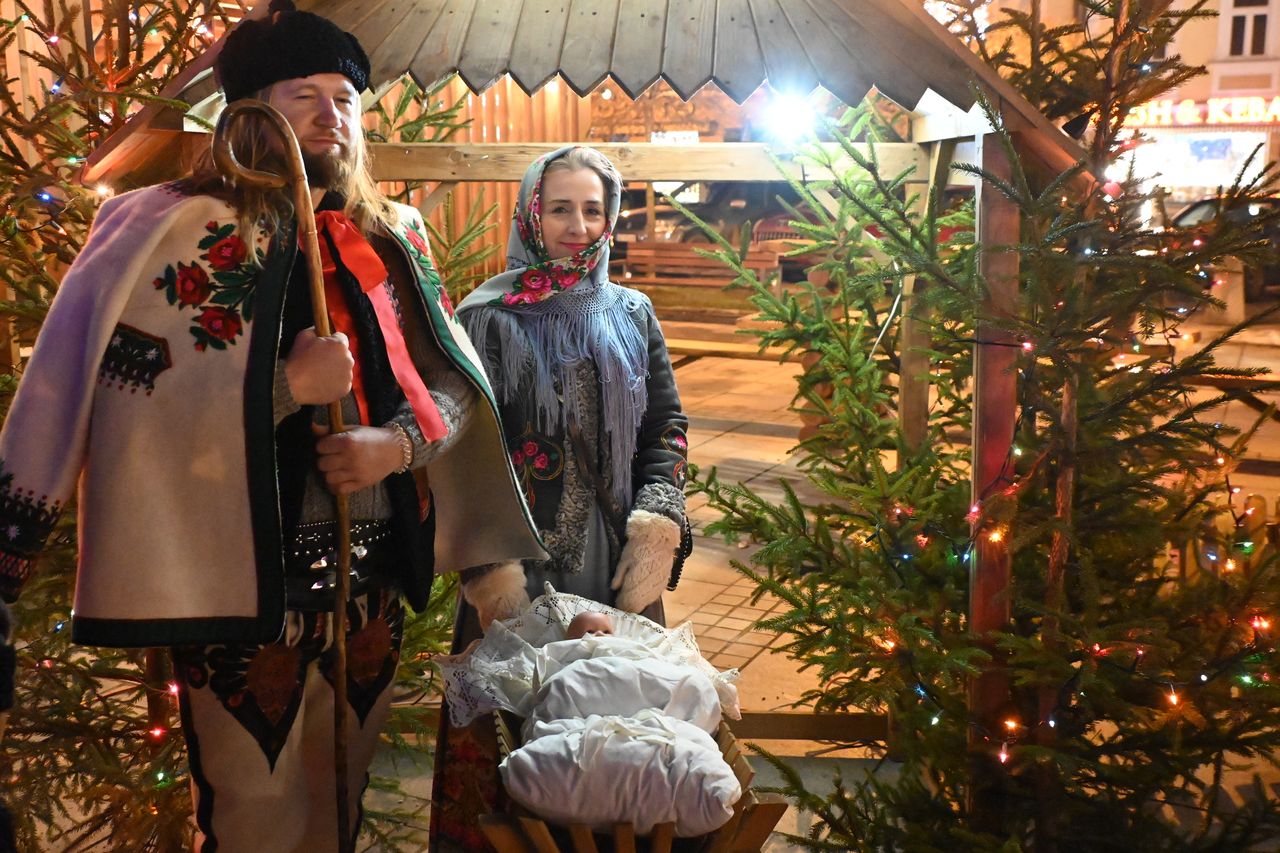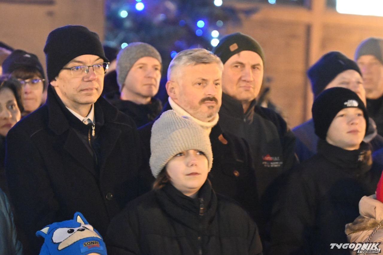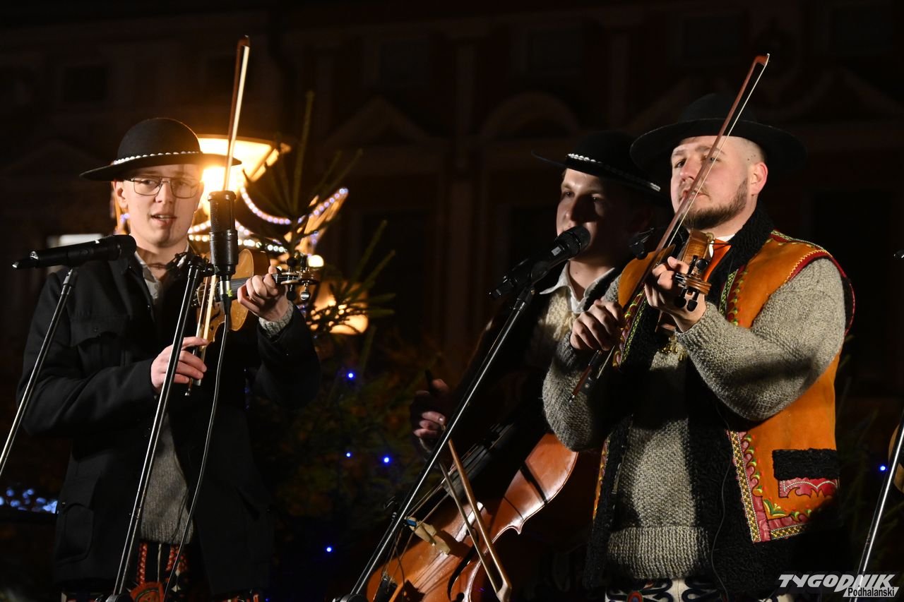 Wiele też w niedzielny wieczór działo się na plenerowej scenie. Roznosiły się stamtąd dźwięki kolęd. Przy szopce stała już rodzina w strojach regionalnych, a członkowie Związku Podhalan z Nowego Targu częstowali tradycyjną chałką. Nie zabrakło też tańca góralskiego przed sceną. Wszystko obserwowali nie tylko liczni nowotarżanie, był burmistrz Grzegorz Watycha i wicestarosta Robert Furca.
