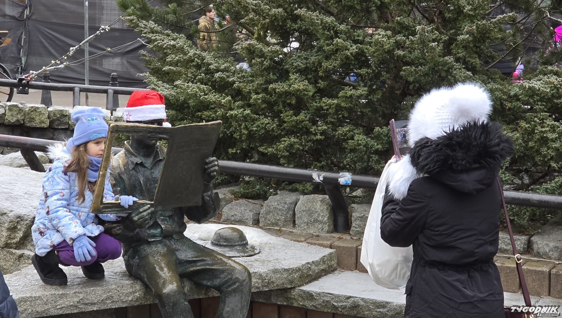 Dziś ubrał mikołajową czapkę. Za swoimi plecami ma piękną choinkę. Pamiętajcie, że spacerując Krupówki możecie zawsze usiąść koło Jędrka na ławeczce i zrobić sobie z nim zdjęcie.