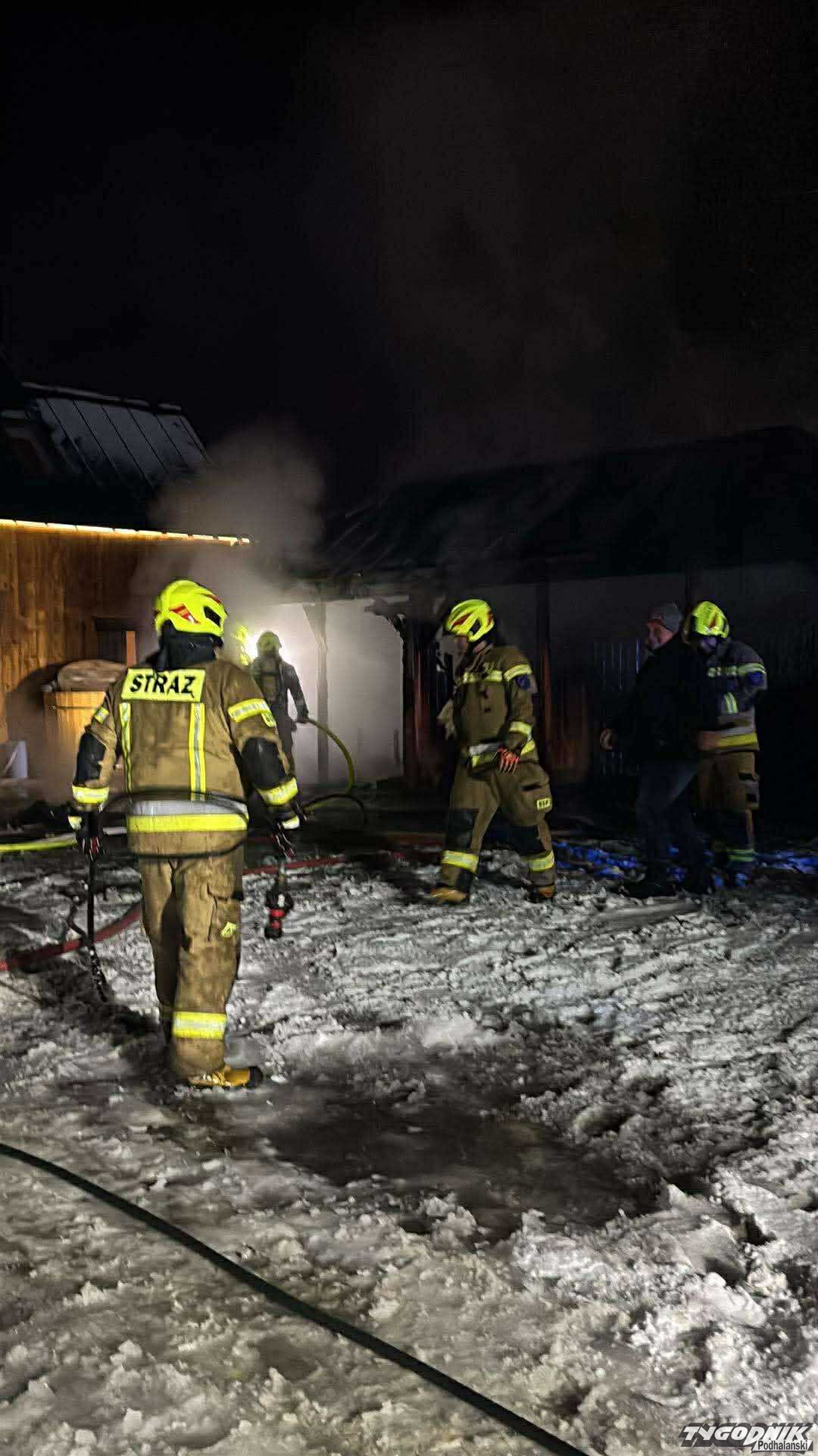Pożar w Białym Dunajcu w rejonie ul. Jana Pawła II wybuchł po godz. 19 w altany przy domku letniskowym. Na miejsce zadysponowano strażaków z Białego Dunajca, Zakopanego, Leszczyn, Gliczarowa Dolnego, Sierockiego. Budynek w pierwszej fazie pożaru stanął w ogniu. Strażakom udało się opanować ogień. Po godz. 21 jednostki strażackie z gminy Kościelisko zostały natomiast wezwane do pożaru domu w Witowie, niedaleko stacji narciarskiej. Do gaszenia wezwano jednostki z Witowa, Kościeliska, Dzianisza Dolnego i Dzianisza Górnego. Samochody strażackie zajmują jeden pas jezdni na głównej drodze w Witowie. Występują utrudnienia w ruchu, Fot. Małopolska Alarmowo, Czytelnik