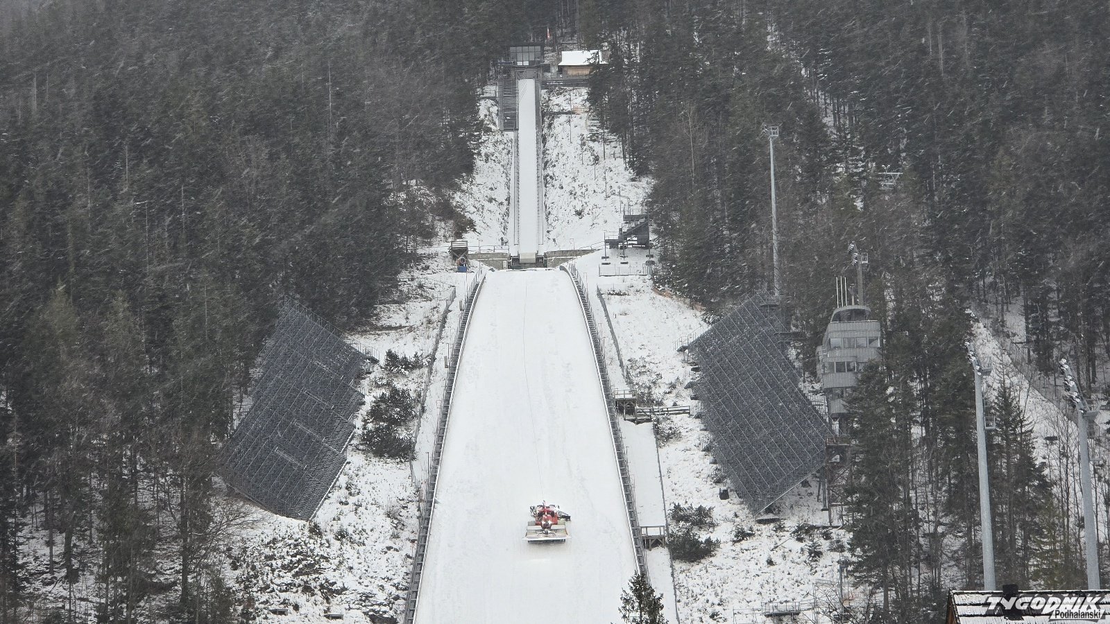 W niedzielę rano wybraliśmy się na spacer pod Wielką Krokiew. Pod skocznią jeszcze niezbyt wielu turystów, ale to z pewnością zmieni się w ciągu najbliższych godzin. Skocznia już przygotowana na zawody Pucharu Świata w skokach, które odbędą się 10-11 stycznia. Śnieg miał sypać mocniej, a tymczasem na razie najwyżej centymetr białego puchu. Wieje wiatr, na Kasprowym z prędkością ponad 80 km na godz. Najbliższe dni będą mroźne. W poniedziałek słońce, a w kolejnych dniach ponownie opady śniegu. Uważajcie na drogach. Wczoraj w wypadku w Suchem ranne zostały trzy osoby, dziś rano doszło do stłuczki w Kościelisku.