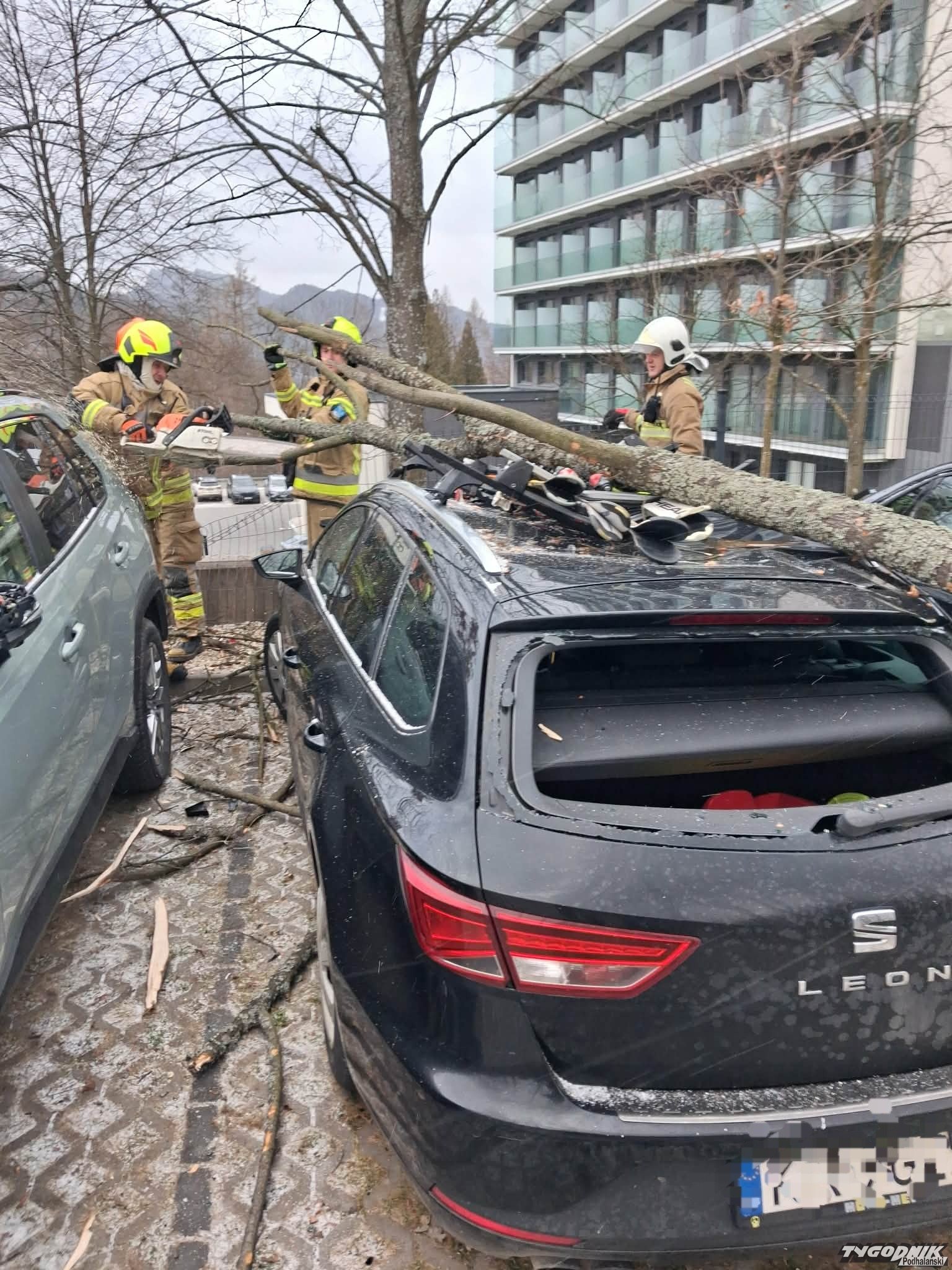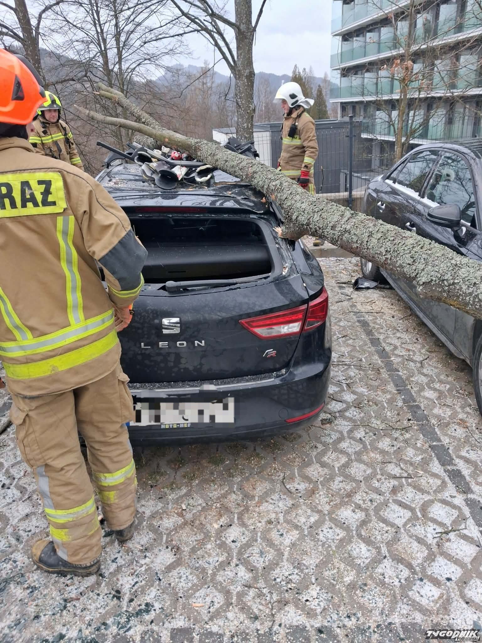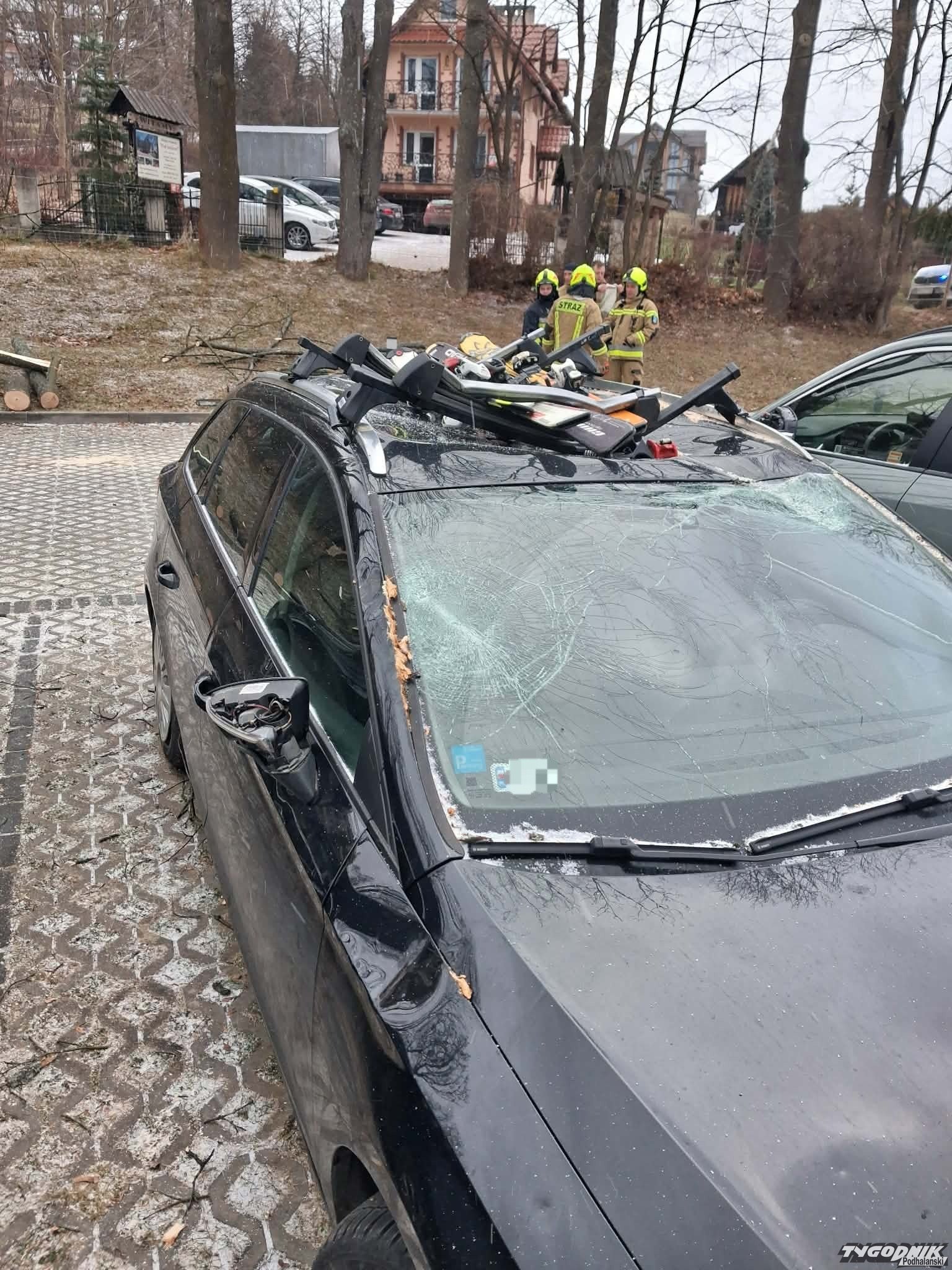Drzewo zwaliło się na samochód turysty