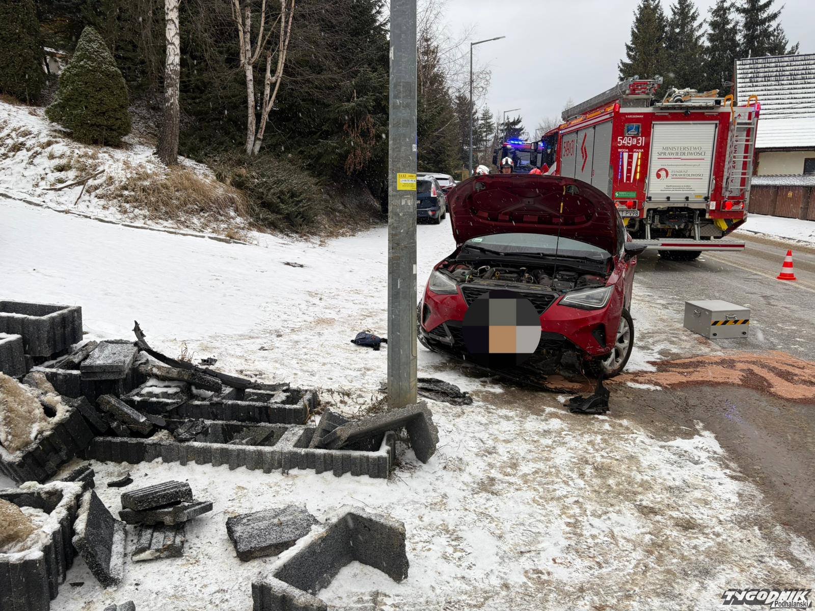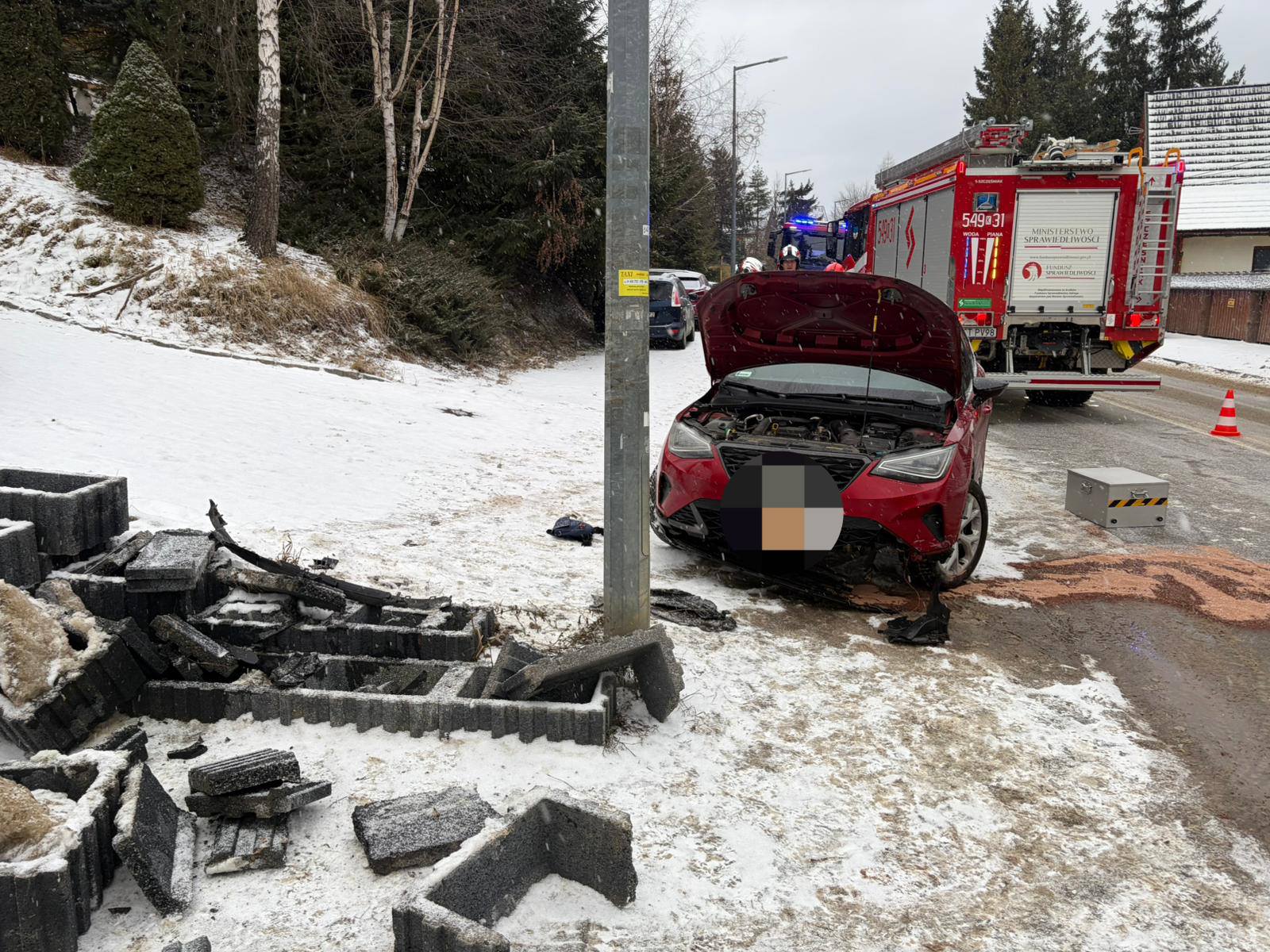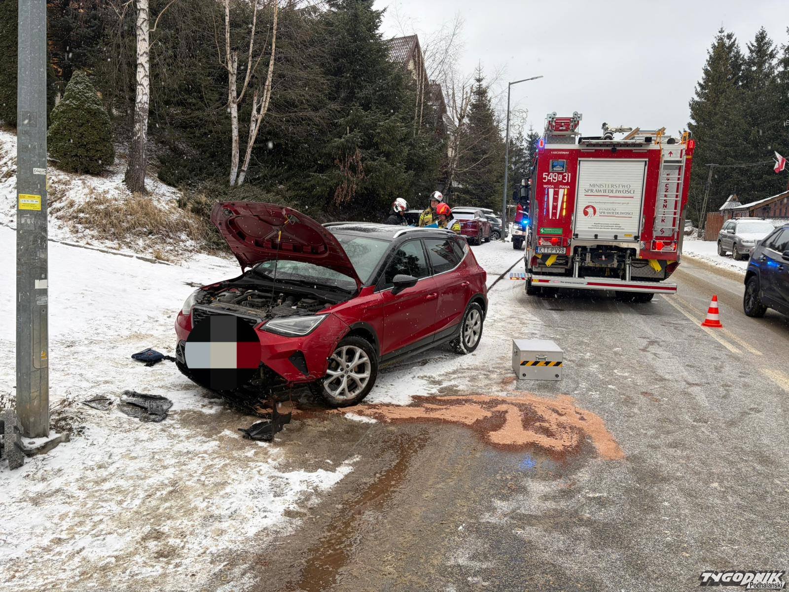 Auto uderzyło w latarnię. Na szczęście w kolizji nikt nie ucierpiał. Na miejscu byli strażacy z Kościeliska i Zakopanego, a także policjanci. Apelujemy do wszystkich o ostrożność. Panują zimowe warunki, należy ograniczyć prędkość i dostosować ją do pogody. Wczoraj późnym wieczorem w Suchem samochód również wypadł z drogi. Trzy osoby zostały ranna.