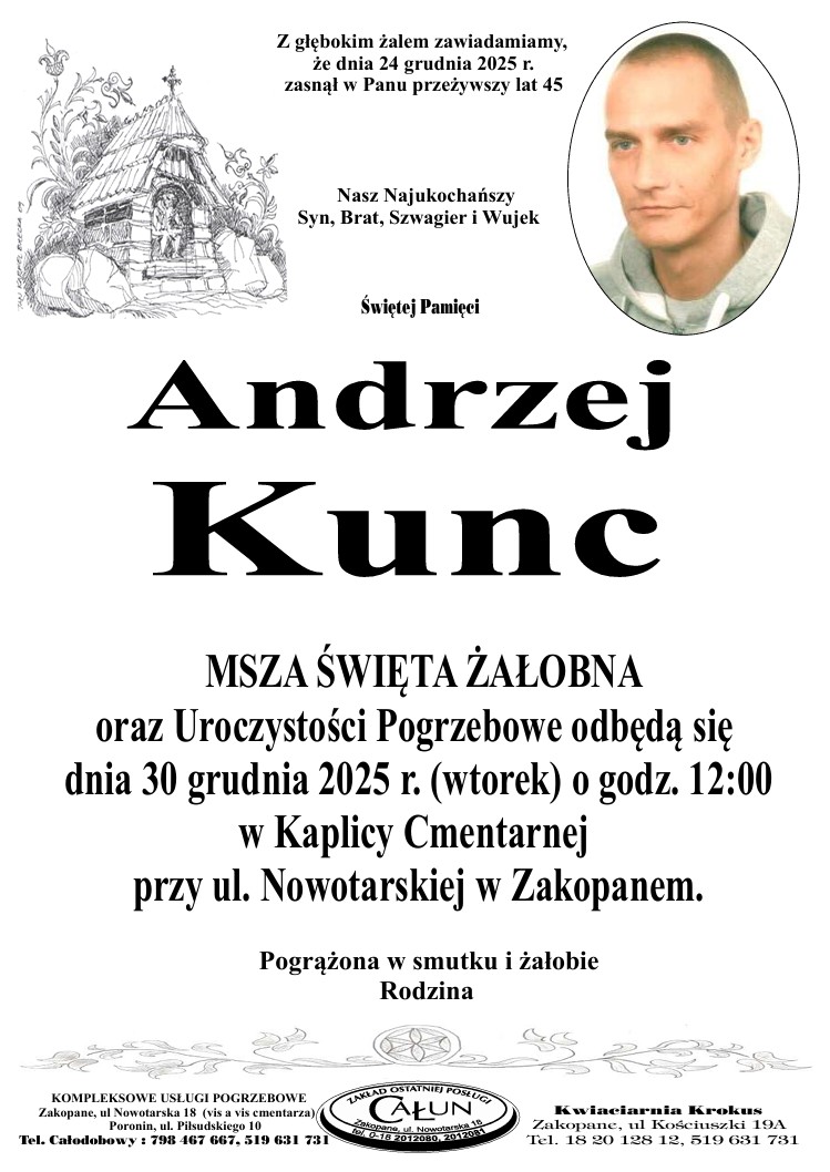 2025-12-29 15:23 Zaginęła Maria Zelek z Białego Dunajca 2025-12-29 15:00 Dziś słońce, ale sylwester ze śniegiem i solidnym mrozem 2025-12-29 14:27 Wieprzowina po azjatycku - przedstawienie kulinarnego fenomenu 2025-12-29 14:24 Kolejny dzień z korkami 1 2025-12-29 14:00 Wielka Krokiew czeka na skoczków i kibiców, Puchar Świata w skokach wcześniej niż zwykle 2025-12-29 13:03 Podróże bez biletu - przenieś się na koniec świata we własnej kuchni 2025-12-29 12:59 Mandaty za złe parkowanie, kolizje i poszukiwania zagubionych dzieci 2025-12-29 12:00 Witaj gwiazdko złota. Chór Gorce z kolędami (ZDJĘCIA, WIDEO) 2025-12-29 10:57 Gang narkotykowy za kratkami 2 2025-12-29 10:50 POMOC JEST BLISKO - CAŁODOBOWO 2025-12-29 09:59 Zaczęli stawiać scenę na Sylwestra (WIDEO) 7 2025-12-29 09:25 Tłumy turystów i dużo śmieci 12 2025-12-29 09:00 Urodziny Tytusa Chałubińskiego 5 2025-12-29 08:00 Szopkowe poruszenie w Maruszynie 2025-12-28 22:44 Próba prędkości wraca na Kotelnicę. Narciarskie emocje już 9 stycznia 2025-12-28 22:40 Pożar sadzy w Borze 1 2025-12-28 21:34 Węgier wołał o pomoc w Tatrach Słowackich. Usłyszeli to polscy turyści 2025-12-28 21:00 Rabczański budżet na przyszły rok przyjęty jednogłośnie 2025-12-28 20:00 Góral z Ludźmierza został kapelanem kard. Rysia 2025-12-28 19:00 Hruby Gazda, ma pod krzyżem karuzelę 18 2025-12-28 18:02 Poważne wypadki w Tatrach. Turysta spadał z Rysów, a po upadku zrezygnował z pomocy ratowników TOPR 1 2025-12-28 17:30 Za nami Opłatek Związku Podhalan w Północnej Ameryce 2025-12-28 17:00 Nie żyje Stanisław Tętnowski - Honorowy Ambasador Nowego Targu 3 2025-12-28 15:59 W Tatrach mróz, śnieg i wiatr. Na spacer najlepiej pod Regle (WIDEO) 2025-12-28 15:16 Pan Marek, Biały Miś z Krupówek o Sylwestrze i pogodzie (WIDEO) 1 2025-12-28 14:35 Jest mały, zmarznięty i skomli uwiązany na łańcuchu (WIDEO) 16 2025-12-28 14:00 Halny, który budzi Babią Górę 3 2025-12-28 13:54 Poranna kolizja w Kościelisku. Apelujemy do kierowców o ostrożność (WIDEO) 3 2025-12-28 13:32 Drzewo zwaliło się na samochód turysty 3 2025-12-28 13:00 Niebawem upływa termin składania wniosków o przyznanie znaku Marki Tatrzańskiej 2025 2025-12-28 12:28 Wspólny program ze Słowakami dla ochrony kozicy i świstaka 6 2025-12-28 12:00 Szopka autorstwa rodziny Herczaków wróciła do Maruszyny 2025-12-28 11:24 Tatrzański park otworzył popularny szlak 2025-12-28 11:00 Pierwsza edycja wyjazdowej wystawy "Pociąg do Zakopanego" 3 2025-12-28 09:59 Mniejsze opady śniegu niż zapowiadano. Zakopane budzi się w niedzielny poranek (WIDEO) 1 2025-12-28 09:00 Skandal zamierzony 12 2025-12-27 22:33 Trzy osoby ranne w wypadku w Suchem 2025-12-27 21:00 Nagroda Amicus Hominum dla Marii Lambrecht, wyróżnienie dla PSONI 2025-12-27 20:00 Kolędowanie z gwiazdorem 2025-12-27 19:00 Na Boże Narodzenie do Sieniawy wróciły bobry (WIDEO) 4 2025-12-27 18:00 Pies uwiązany na długim łańcuchu, bułka na śniegu, jakieś wiadro i buda (WIDEO) 21 2025-12-27 17:00 TPN apeluje - można bawić się bez fajerwerków, kolejna prośba o ciszę 17 2025-12-27 16:00 Krupówki zapełnione od rana do wieczora 9 2025-12-27 15:52 Trasy biegowe zamknięte dla narciarzy, zbyt mało śniegu do biegania 2025-12-27 15:04 Najlepszy start w karierze Maryny Gąsienicy Daniel. Fantastyczny drugi przejazd 1 2025-12-27 14:00 Gubałówka oblężona. Długa kolejka do kolejki (WIDEO) 2025-12-27 13:25 Centrum Zakopanego kompletnie zakorkowane (WIDEO) 9 2025-12-27 12:37 Korek do Zakopanego już w Nowym Targu, drogi wjazdowe na czerwono, masakra z parkowaniem 3 2025-12-27 12:00 W Tatrach cieplej niż w Zakopanem. Tak było o poranku na Nosalu 2025-12-27 11:00 Gasili pożary, jeździli do wypadków, prowadzili poszukiwania czyli pracowite Święta Bożego Narodzenia 1