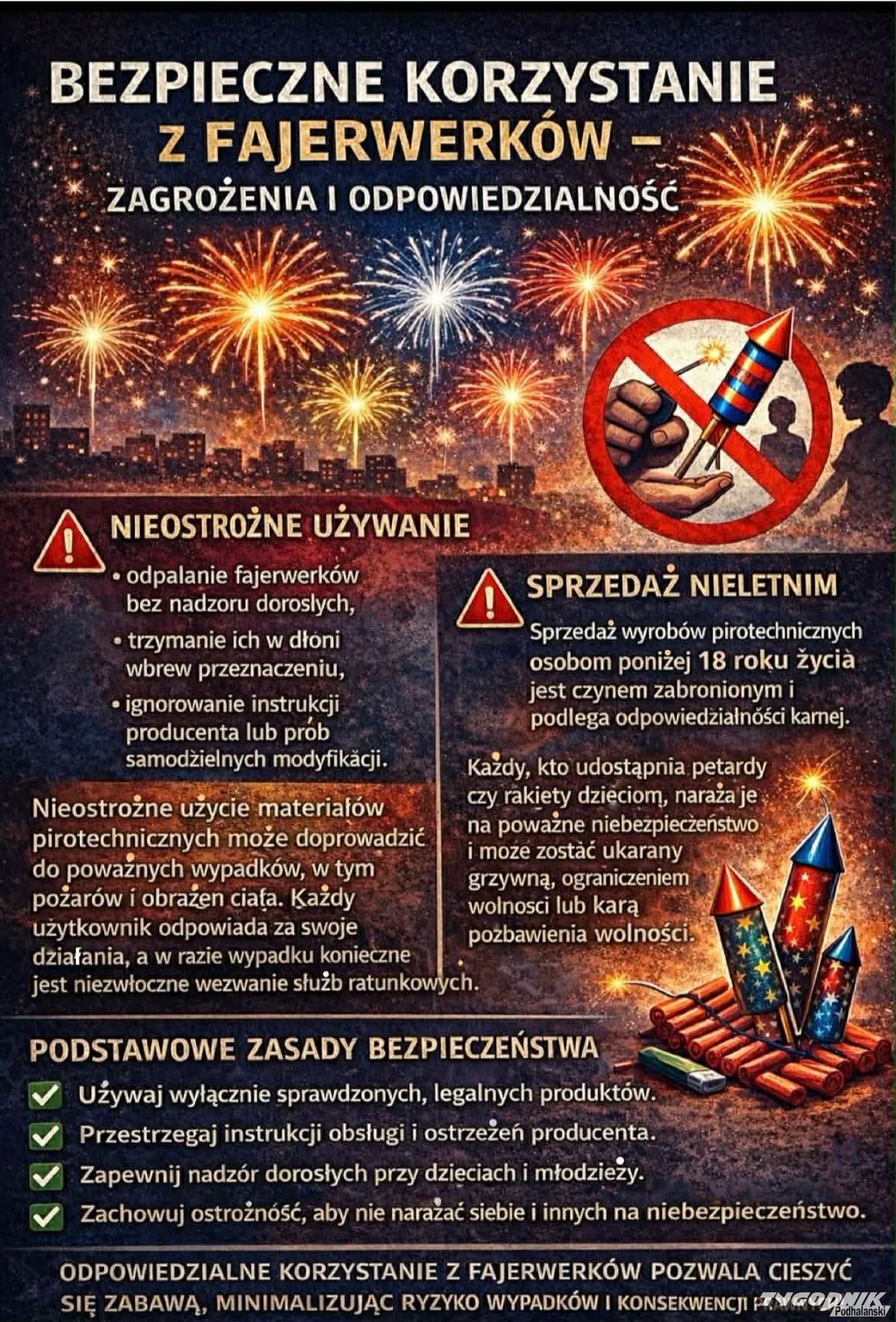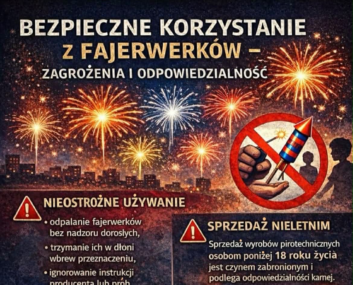 Zakopiańska policja przypomina, że na terenie miasta przez cały rok obowiązuje zakaz używania fajerwerków, petard oraz innych materiałów pirotechnicznych w miejscach publicznych. Regulacje te wynikają z uchwały Rady Miasta Zakopane i mają na celu ochronę mieszkańców, turystów, zwierząt oraz środowiska naturalnego.