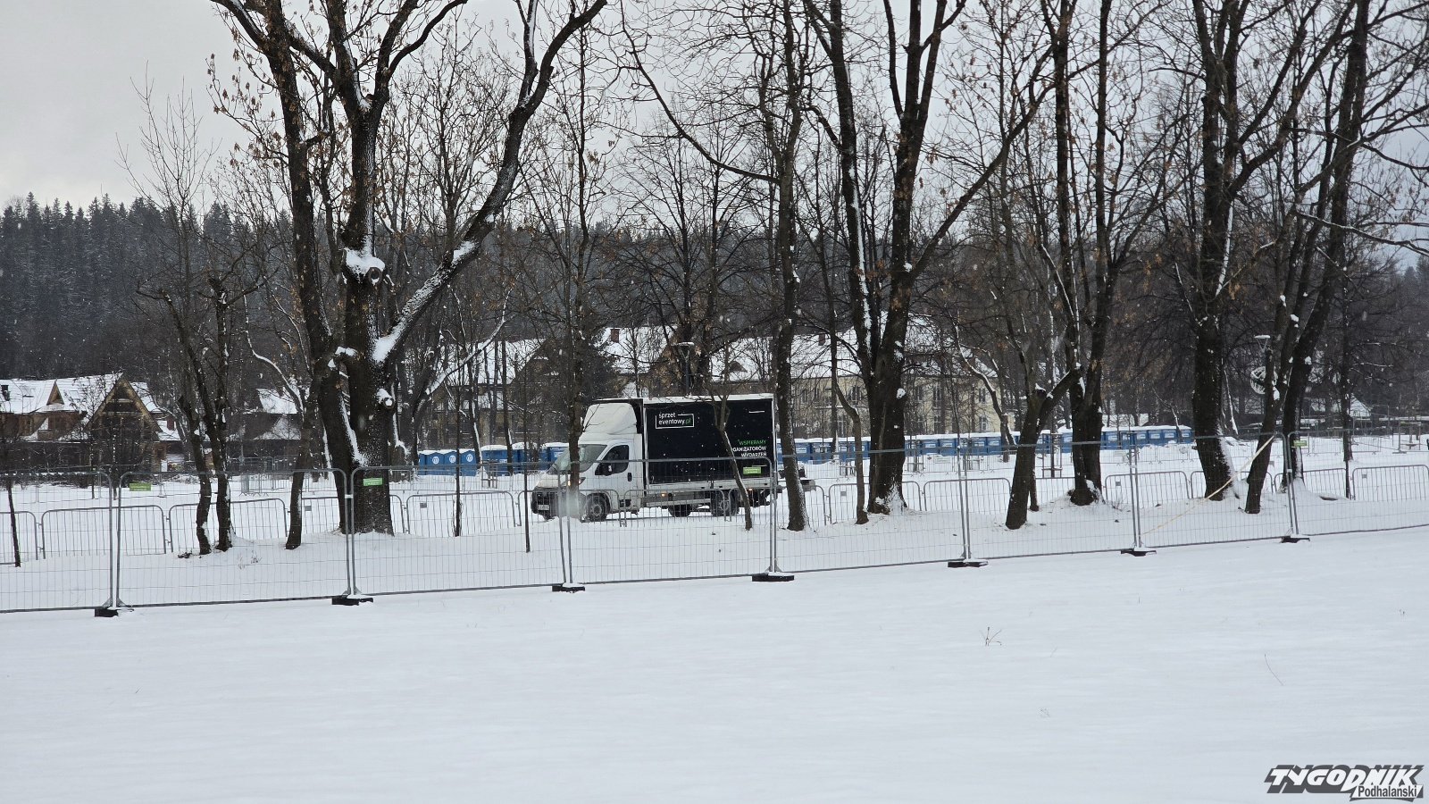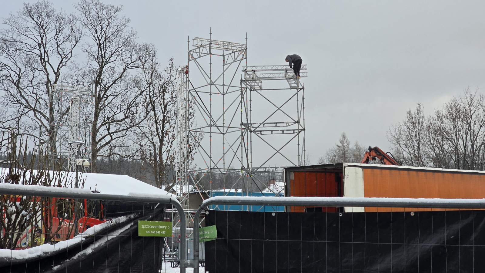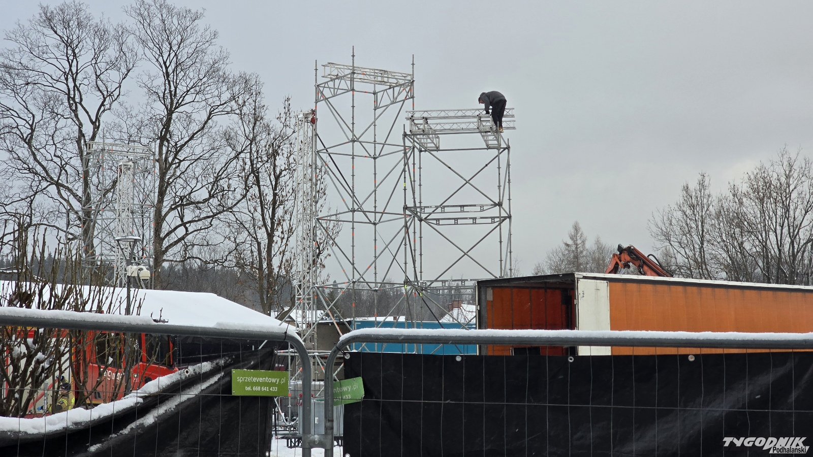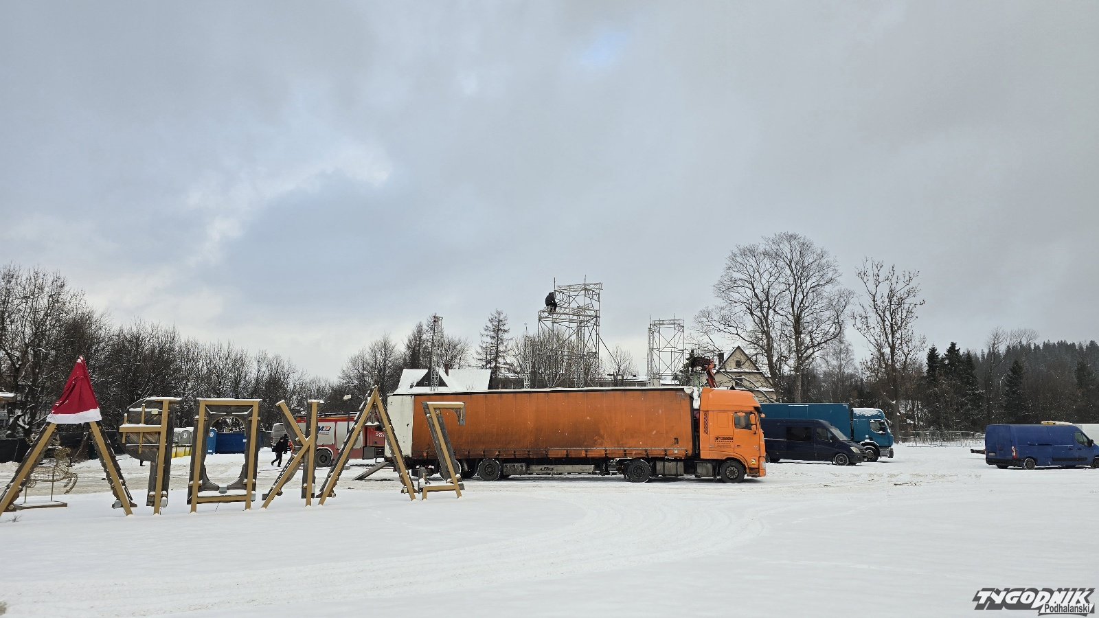 Montaż sceny rozpoczął się dość późno, bo w poniedziałek rano. Teraz teren koncertu jest już ogrodzony. Przyjechały też przenośne toalety. Od rana trwają kolejne prace przy montażu sceny. Główną gwiazdą wieczoru ma być zespół De Mono, wystąpią też zespoły regionalne, Basia Giewont, Future Folk. Pogoda zapowiada się mroźna i śnieżna. W czasie nocy sylwestrowej temperatura ma spaść do -11 st. C.