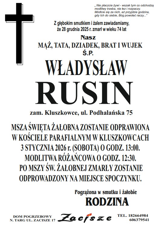 2025-12-31 17:49 Duży pożar w Sieniawie 2025-12-31 17:41 Na Olczy Stachoniach utknęła cysterna (WIDEO) 2025-12-31 17:30 Magdalena Berbeka, Michał Zaborowski i Andrzej Świetlik w Witkacym 2025-12-31 16:59 Zimowy paraliż pod Tatrami. Policja apeluje: w góry tylko na oponach zimowych 2 2025-12-31 16:51 Awaria w dostawach prądu na Podhalu 3 2025-12-31 16:45 Sylwestrowe życzenia z Krupówek trafią na łamy Tygodnika Podhalańskiego 2025-12-31 16:15 Witryny sklepów na Krupówkach zabezpieczone przed sylwestrowymi gośćmi 3 2025-12-31 16:00 Szklany kac pod Tatrami. Sylwestrowi balowicze już zostawiają śmieciowe ślady 2025-12-31 15:56 Gdy trudne warunki, załóż łańcuch na koła, brak łańcucha oznacza mandat 2025-12-31 15:00 Apel wójt Poronina: nie strzelaj w sylwestra. To strach i cierpienie zwierząt 3 2025-12-31 14:00 Budżet powiatu nowotarskiego na przyszły rok uchwalony 2025-12-31 13:35 Dobre warunki na stokach w Bukowinie Tatrzańskiej (wideo) 2025-12-31 13:30 Kasia zaprasza na kulig do Murzasichla (WIDEO) 3 2025-12-31 13:00 Burmistrz Zakopanego zaprasza na sylwestra i apeluje (WIDEO) 11 2025-12-31 12:00 Zmiany numerów linii komunikacji miejskiej w Zakopanem od 2026 roku 2025-12-31 12:00 Rekuperacja zimą - jak działa, ile oszczędza i jak ją ustawić w praktyce? 2025-12-31 11:00 W Zakopanem 25 cm śniegu, na Kasprowym prawie pół metra (WIDEO) 2 2025-12-31 10:43 Słuczka dwóch osobówek na Spiszu 2025-12-31 10:39 Nocna akcja TOPR. Ratownicy proszą o rezygnację z górskich wycieczek (WIDEO) 2025-12-31 10:38 Na Równi Krupowej wyrastają stragany 3 2025-12-31 10:31 Przed sylwestrem. Zamknięte parkingi i ulice. Tworzą się korki 4 2025-12-31 10:26 Prawdziwa śnieżyca w Zakopanem (ZDJĘCIA, WIDEO) 4 2025-12-31 10:07 Kombatant - kto to? 2025-12-31 10:00 Mężczyzna z licznymi urazami w Szczawnicy 2025-12-31 09:00 Zderzenie trzech aut w Jabłonce 2025-12-31 08:22 Pomóżcie odnaleźć Reksia 2025-12-31 08:12 Pożar wiaty garażowej w Lipnicy Małej 2025-12-31 08:00 Dziś papierowe wydanie Tygodnika, a w nim kalendarz na 2026 rok! 2025-12-31 03:33 SPRZEDAM MIESZKANIE w Krakowie, świetna lokalizacja 2025-12-30 21:30 Otwarte drzwi, to okazja dla złodzieja 3 2025-12-30 20:30 Ty podziwiasz fajerwerki, a zwierzęta cierpią 12 2025-12-30 19:30 Krakowiacy i Górale w zubrzyckim skansenie 2025-12-30 18:49 Pożar budynku na Olczy Stachonie w Zakopanem (WIDEO) 2025-12-30 18:24 Odnowiony budynek OSP w Grywałdzie 2025-12-30 18:00 Kameralne spotkanie z muzyką 2025-12-30 17:46 Sylwester oznacza znacznie krótszy czas pracy dla urzędu 7 2025-12-30 17:30 Kobieta, która uczyniła z ubioru język sztuki i siły. Mamy dla Was książkę 2025-12-30 17:00 Niebywałe, budżet Nowego Targu uchwalony jednogłośnie 2 2025-12-30 16:30 Starostwo Powiatowe w Zakopanem pracuje krócej w Sylwestra 3 2025-12-30 16:00 Sylwester w Zakopanem z Radiem Złote Przeboje, wszystko co trzeba wiedzieć, by dobrze się bawić 5 2025-12-30 15:30 Dobre wieści z Grywałdu. Nasz film naprawdę zadziałał. 6 2025-12-30 15:00 Paraliż ruchu kolejowego na trasie Kraków Lotnisko - Wieliczka Rynek-Kopalnia 1 2025-12-30 14:01 Gwałciciel już ogląda świat zza kratek 1 2025-12-30 13:33 W Krościenku trwa Jarmark Świąteczny (WIDEO) 2025-12-30 13:00 Ta gmina to jakiś ewenement 4 2025-12-30 12:01 Trwa budowa sceny sylwestrowej (WIDEO) 2 2025-12-30 11:30 Wielki Sylwester w Szczawnicy 1 2025-12-30 11:00 Mróz, śnieg i wiatr. Zimowa pogoda w Zakopanem. Ostrzeżenie przed zamiecią 2025-12-30 10:00 Pienińskie kolędowanie 1 2025-12-30 09:00 W Tatrach drugi stopień zagrożenia lawinowego