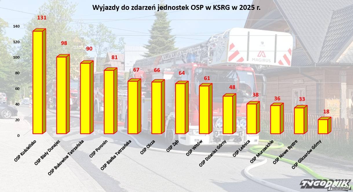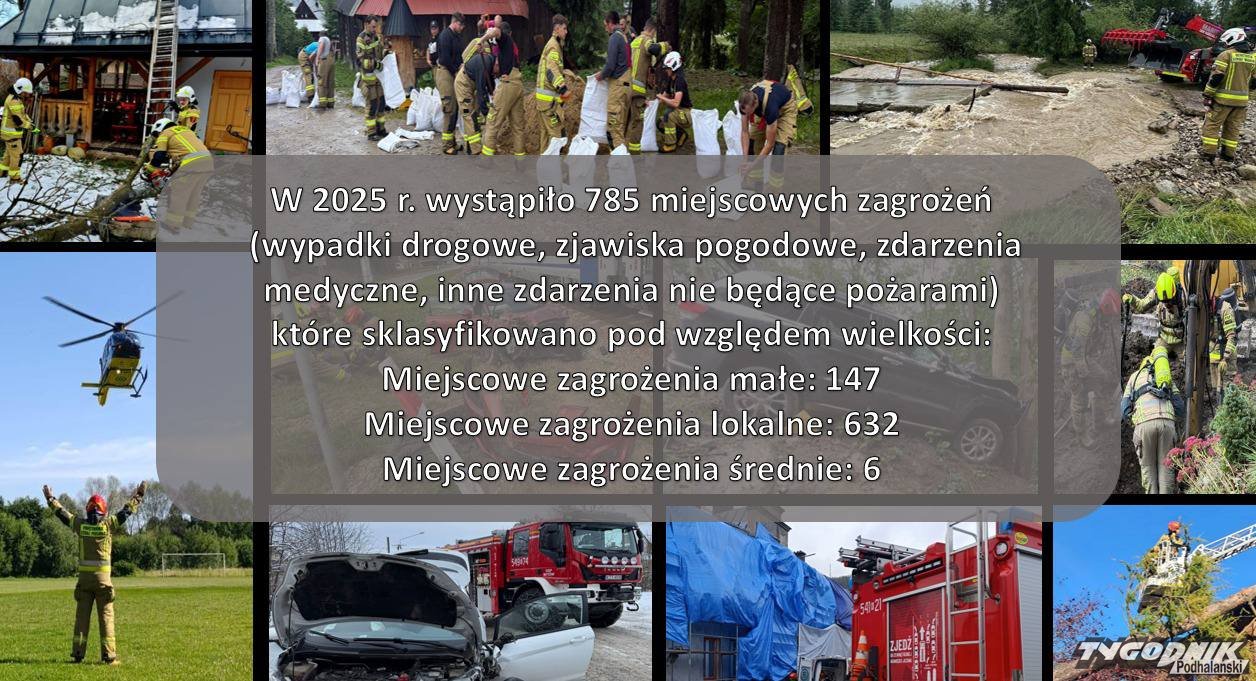 Straż Pożarna na terenie Powiatu Tatrzańskiego w minionym, 2025 roku podjęła ponad tysiąc sto interwencji. W tej liczbie było blisko dwieście pożarów, ponad siedemset miejscowych zagrożeń na drodze i nie tylko, a także prawie dwieście alarmów fałszywych.
