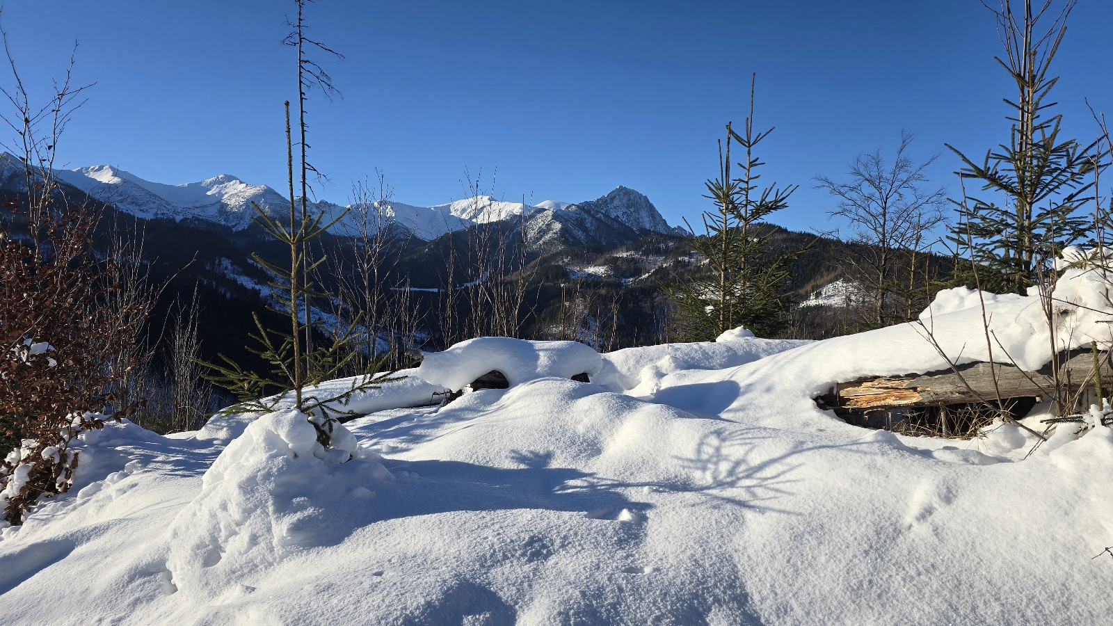 To był przepiękny, chociaż mroźny poranek w Tatrach. W Zakopanem w nocy temperatura spadła do -7,8 st. C., a na Kasprowym do -14,7 st. W Tatrach do pół metra śniegu, w Zakopanem nieco ponad 20 cm. Na tatrzańskich szlakach od rana wielu turystów. Na Nosalu już po godz. 10 spotkaliśmy kilkanaście osób. Widok na oświetlone słońcem Tatry przepiękny. Kolejne dni to trochę chmur, trochę słońca, niewielkie opady śniegu i solidny mróz przez cała dobę.