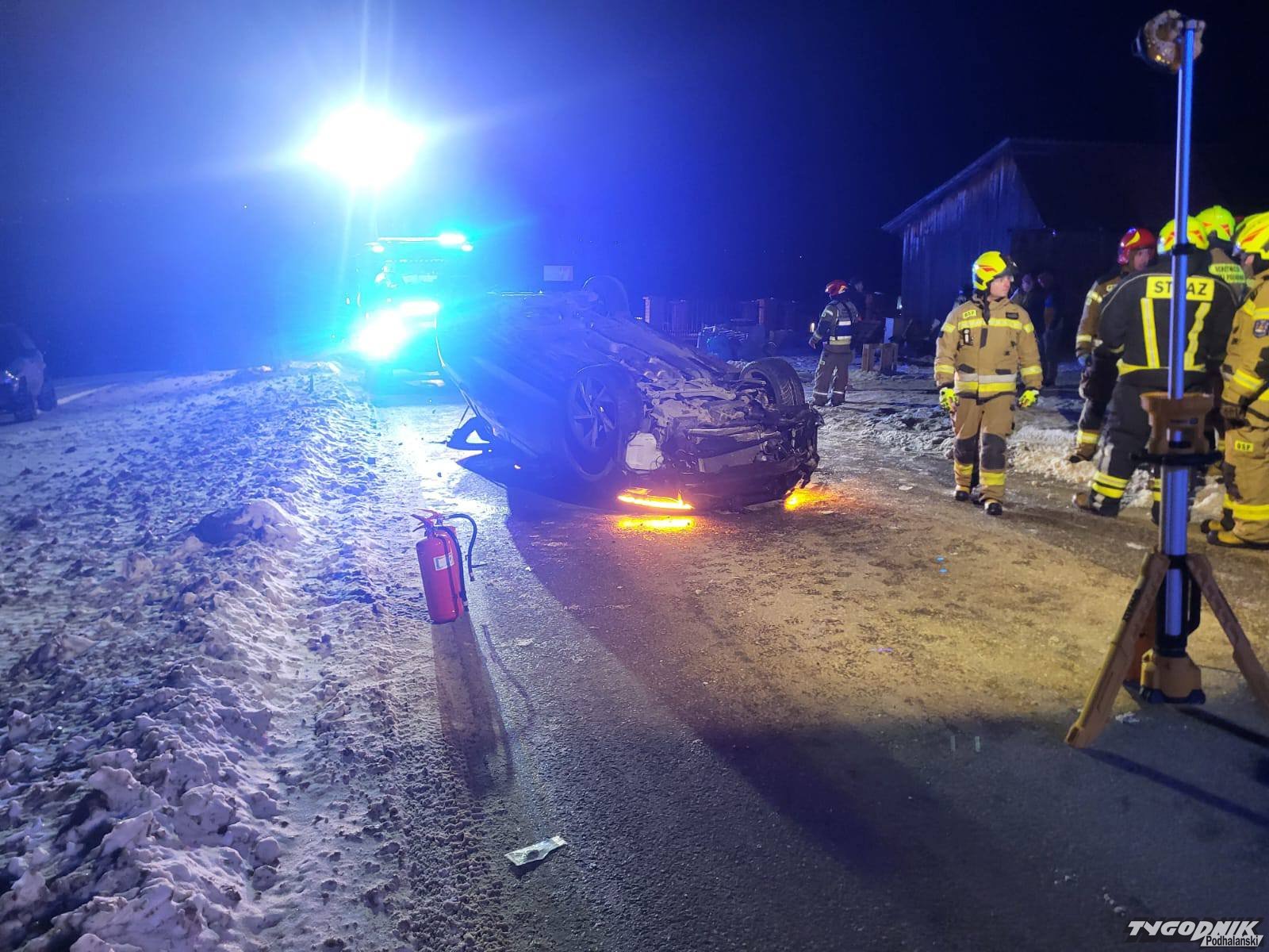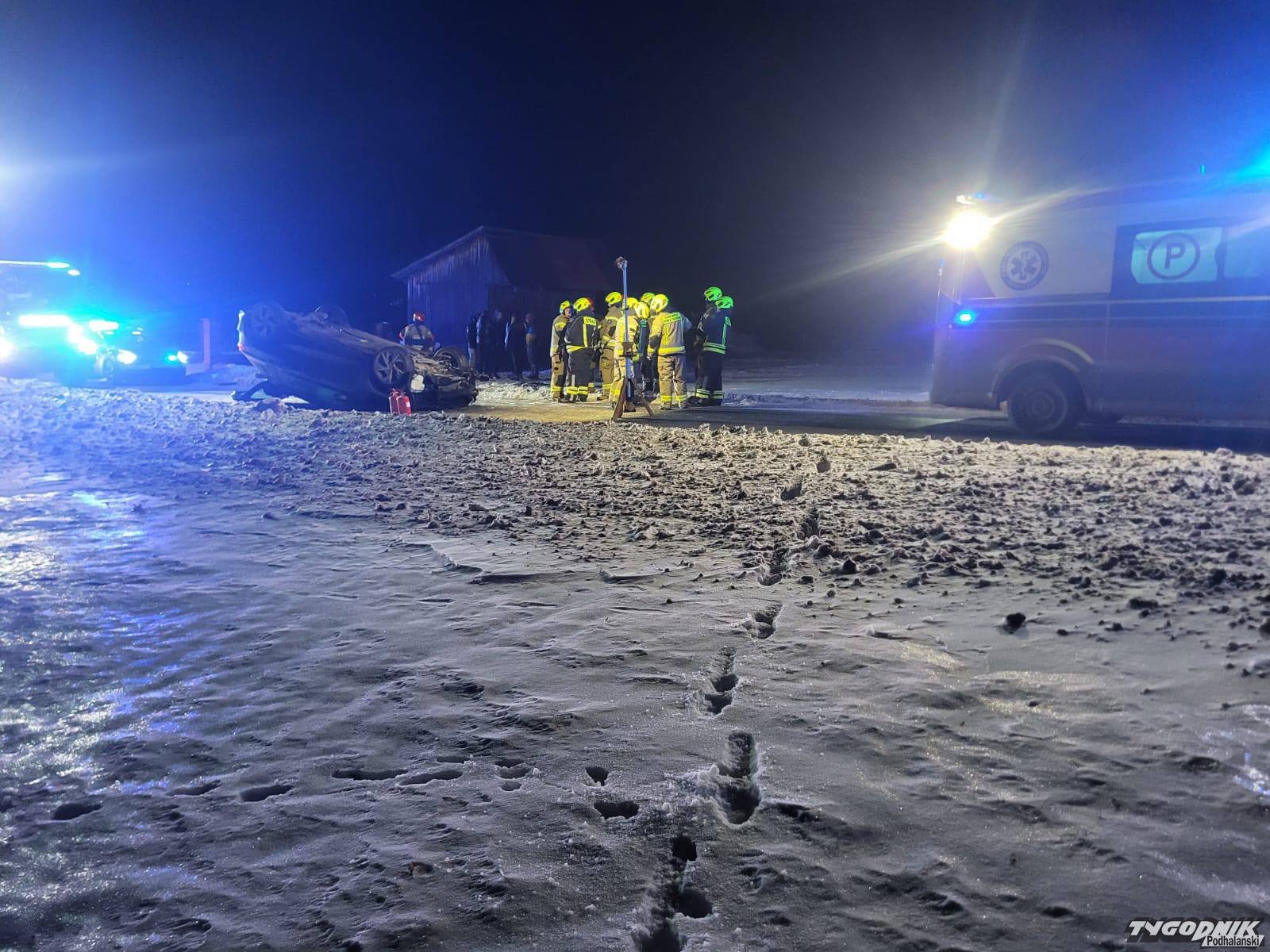 W niedzielę późnym wieczorem w Białym Dunajcu dachował samochód.