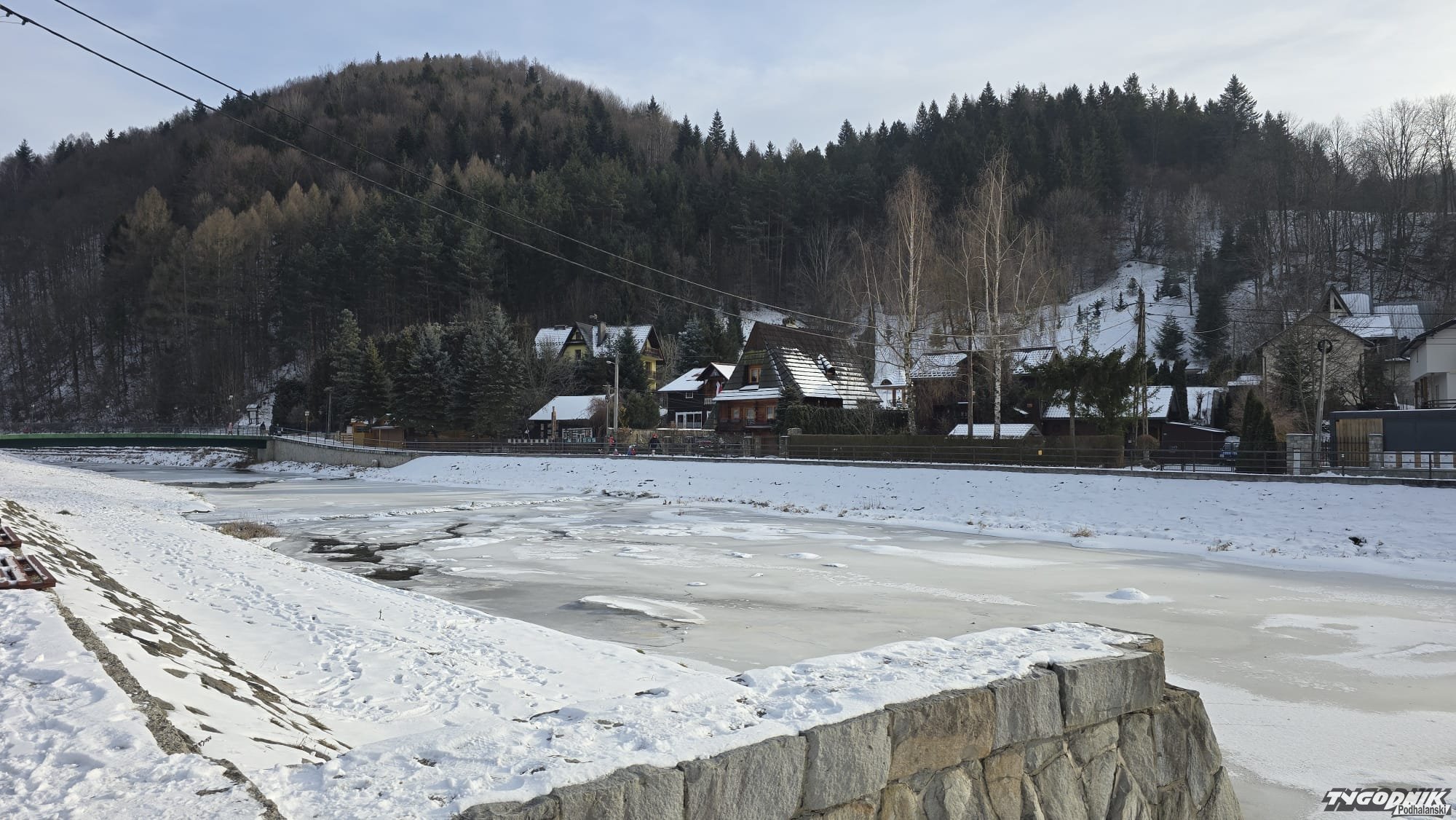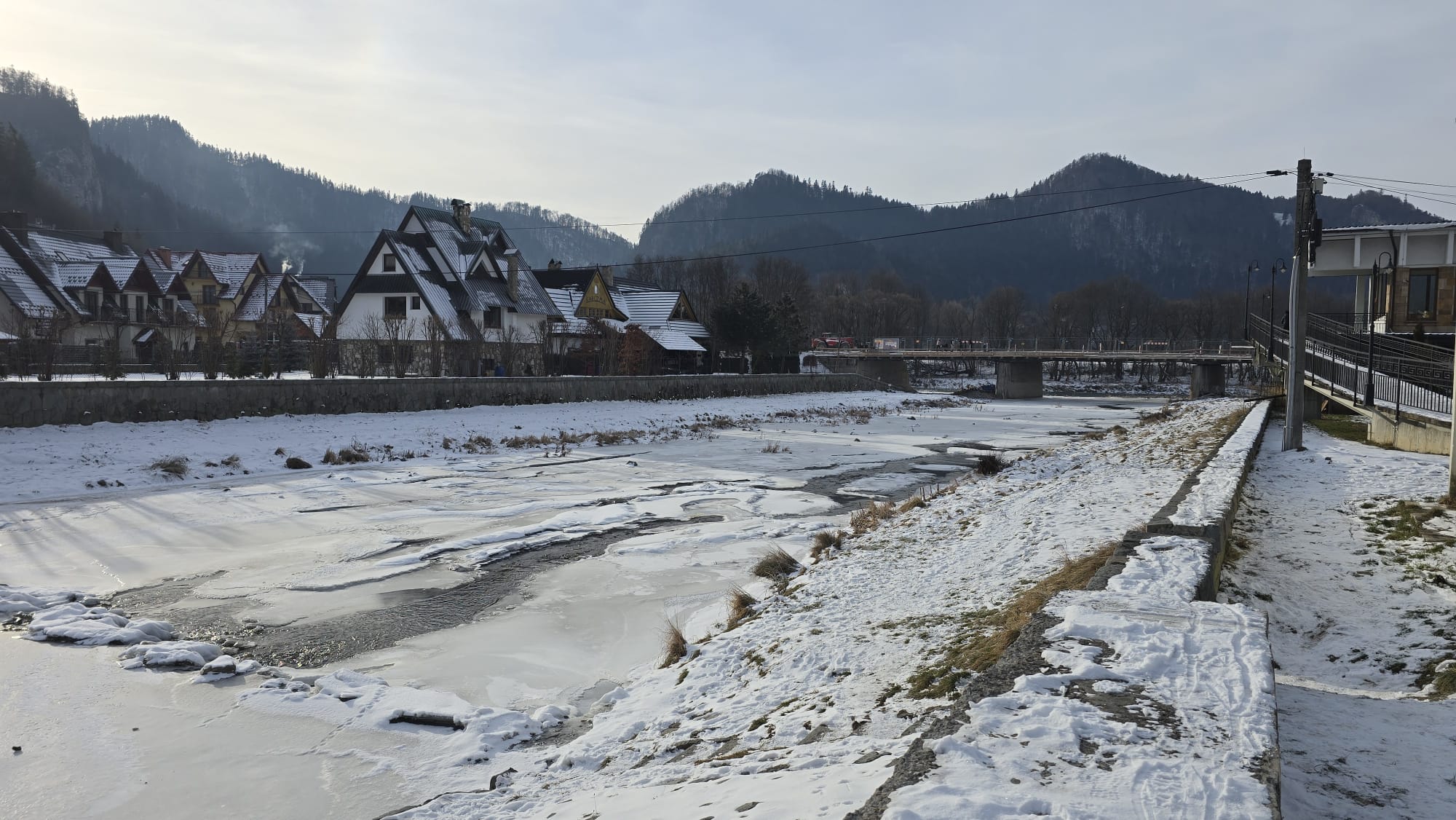 Grajcarek w Szczawnicy jest obecnie skuty lodem, a słoneczna, choć bardzo mroźna pogoda sprawia, że krajobrazy w regionie wyglądają jak z pocztówki.
